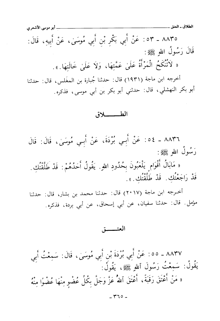 ٨٨٣٥ - عَنْ أَبِي بَكْرِ بْنِ أَبِي مُوسَى، عَنْ أَبيهِ، قال: قال رَسُولُ اللهِ صلى الله عليه وسلم: