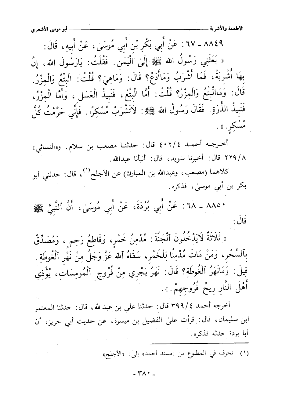 كلاهما (مصعب، وعبد الله بن المبارك) عن الأجلح. قال: حدثني أبو بكر بن أبي موسى، فذكره.