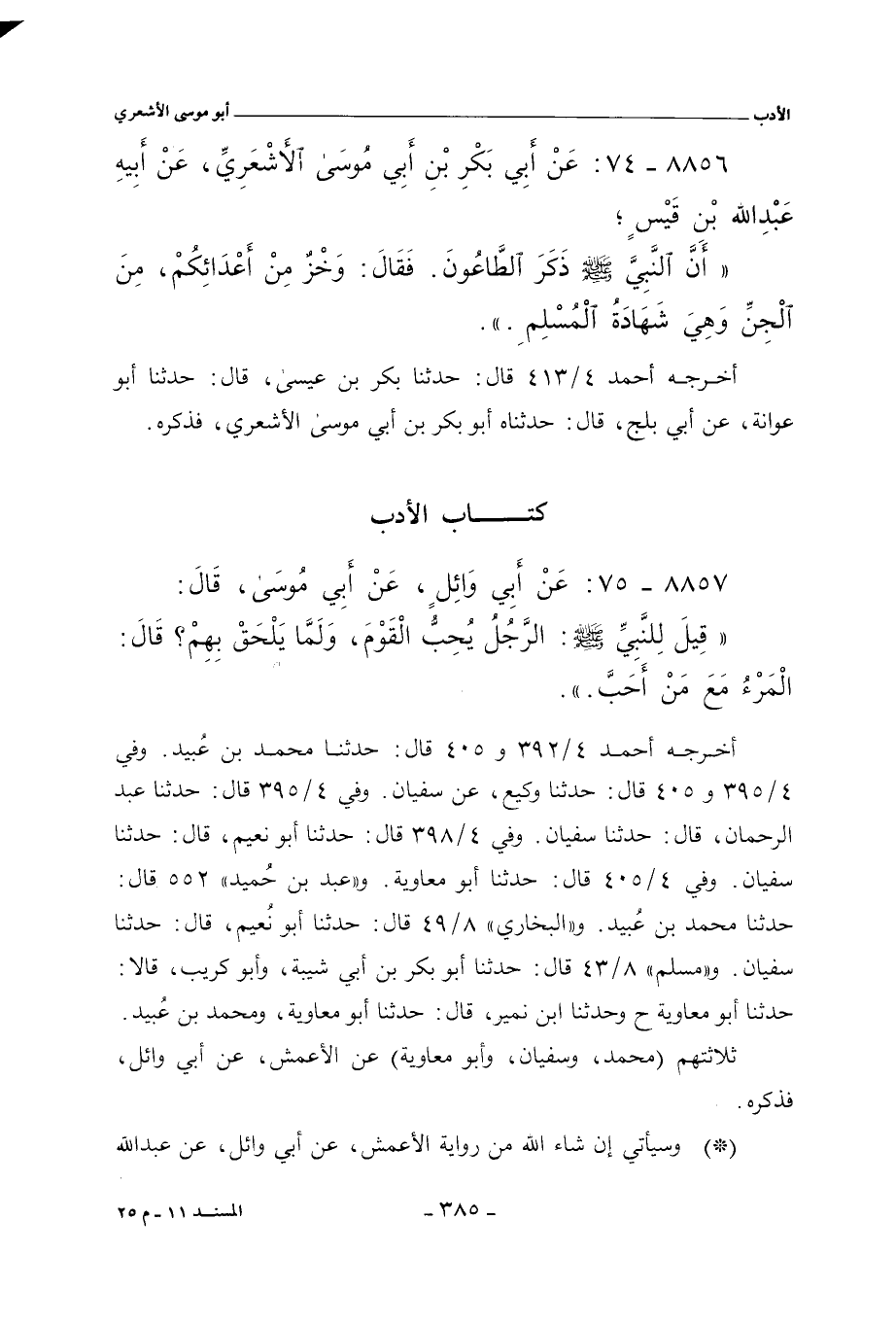 ٨٨٥٧ - عَنْ أَبِي وَائِلً، عَنْ أَبِي مُوسَى، قال: