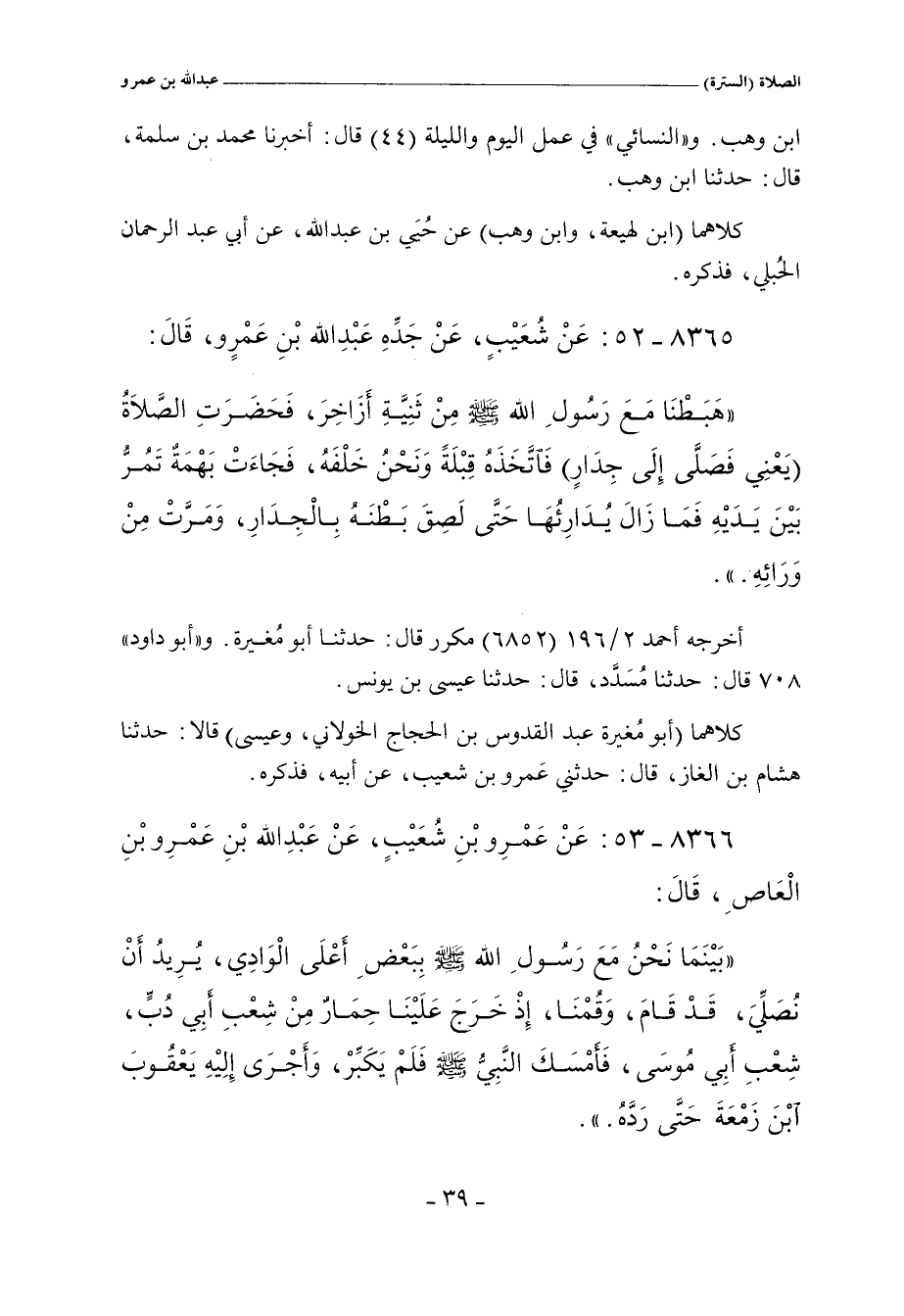 ٨٣٦٥ - عن شُعَيْبٍ، عَنْ جَدِّهِ عَبْدِ اللهِ بْنِ عَمْروٍ، قَالَ: