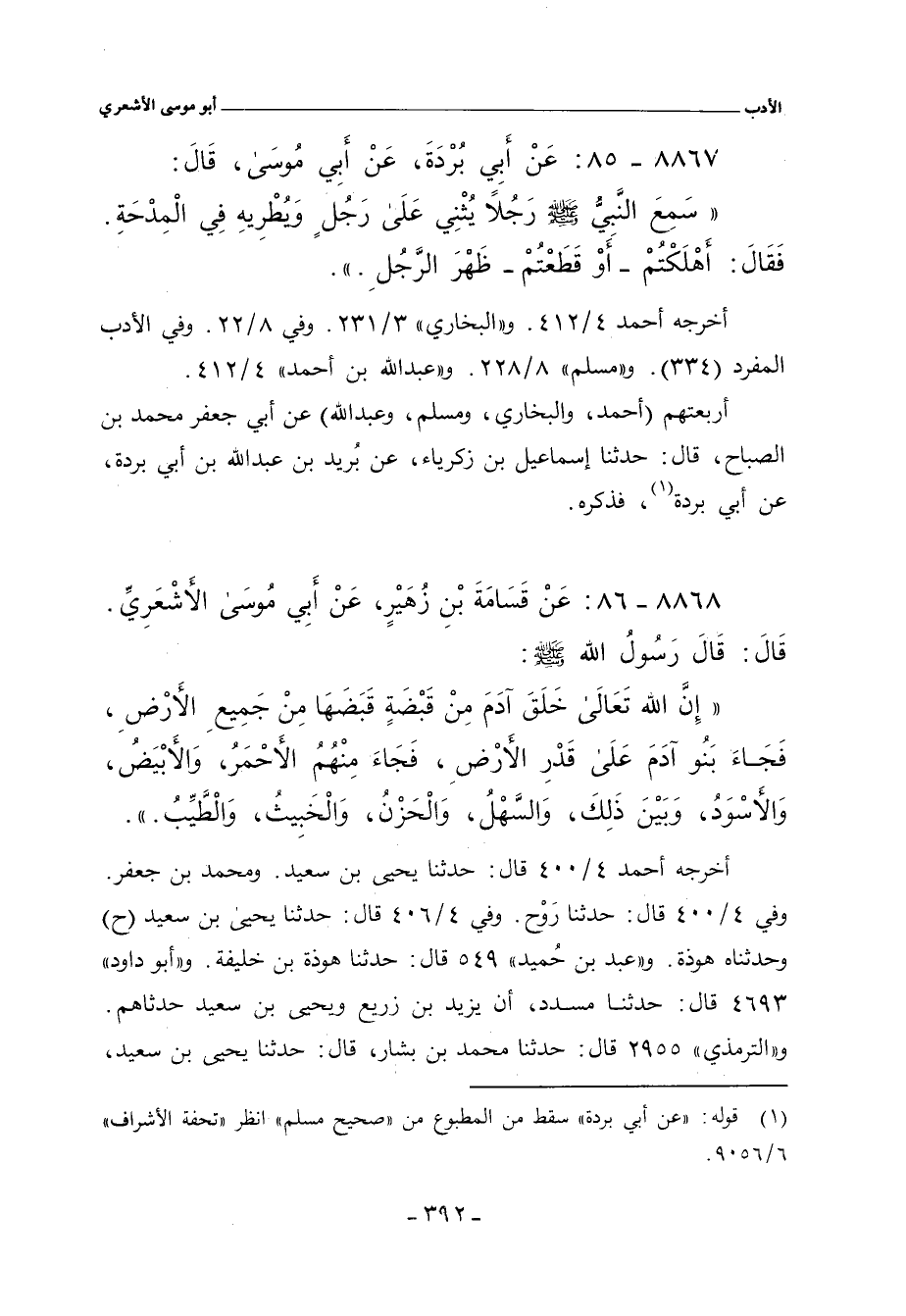 ٨٨٦٧ - عَنْ أبِي بُرْدَةَ، عَنْ أبِي مُوسَى، قال: