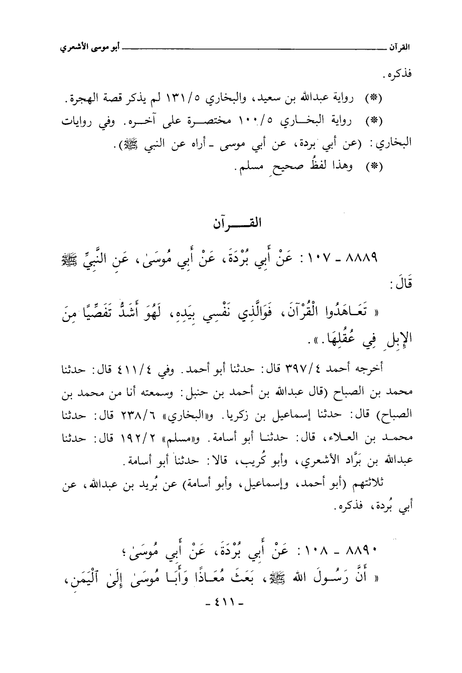 أخرجه أحمد ٤/ ٣٩٧ قال: حدَّثنا أبو أحمد. وفي ٤/ ٤١١ قال: حدَّثنا محمد بن الصباح (قال عبد الله بن أحمد بن حنبل: وسمعته أنا من محمد بن الصباح) قال: حدَّثنا إسماعيل بن زكريا. والبخاري ٦/ ٢٣٨ قال: حدَّثنا محمد بن العلاء، قال: حدَّثنا أبو أُسامة. ومسلم ٢/ ١٩٢ قال: حدَّثنا عبد الله بن بَرَّاد الأشعري، وأبو كُريب، قالا: حدَّثنا أبو أُسامة.