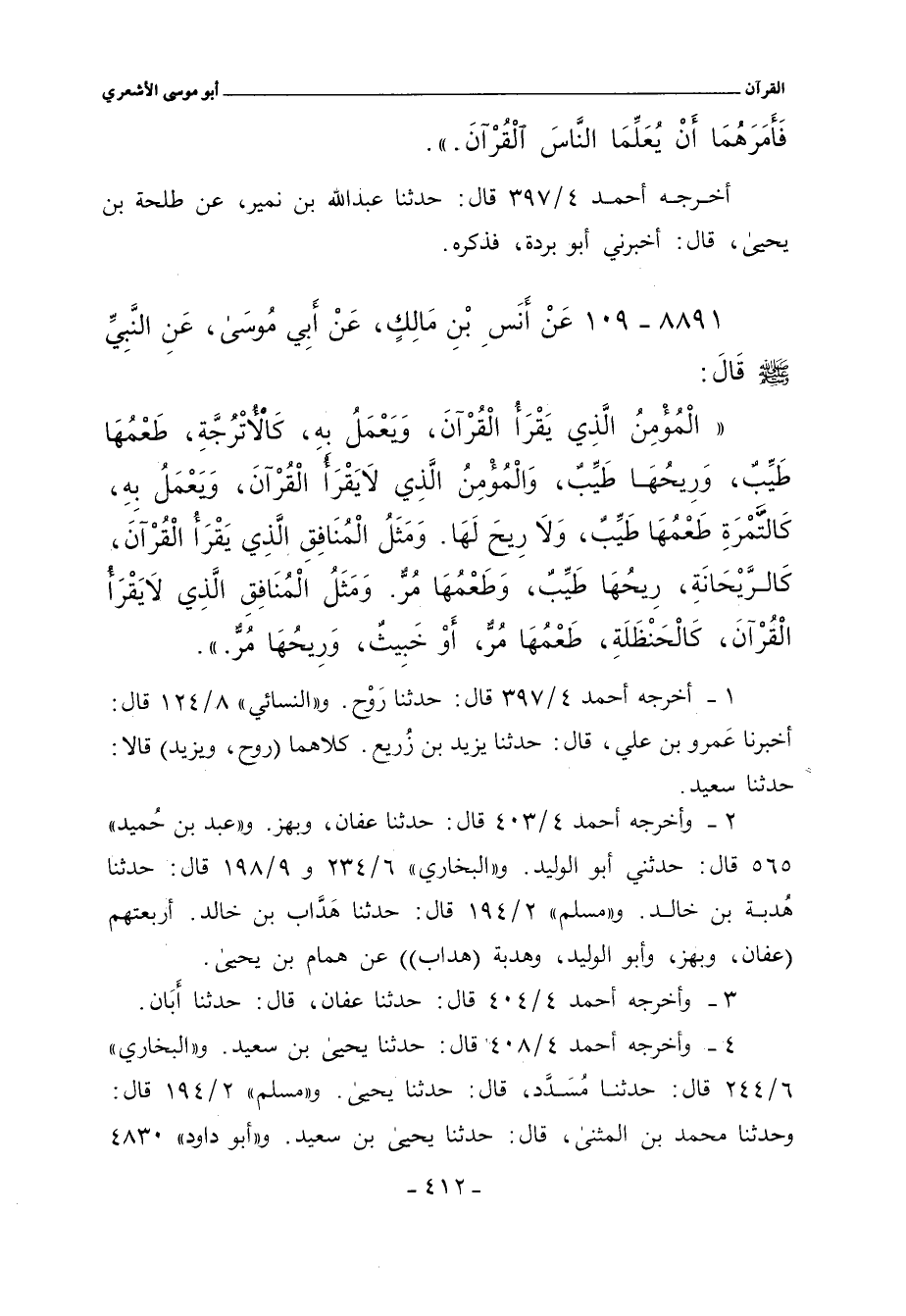 ٨٨٩١ - عَنْ أَنَس بْنِ مَالِكٍ، عَنْ أَبِي مُوسَى، عَنِ النَّبِيّ صلى الله عليه وسلم قال: