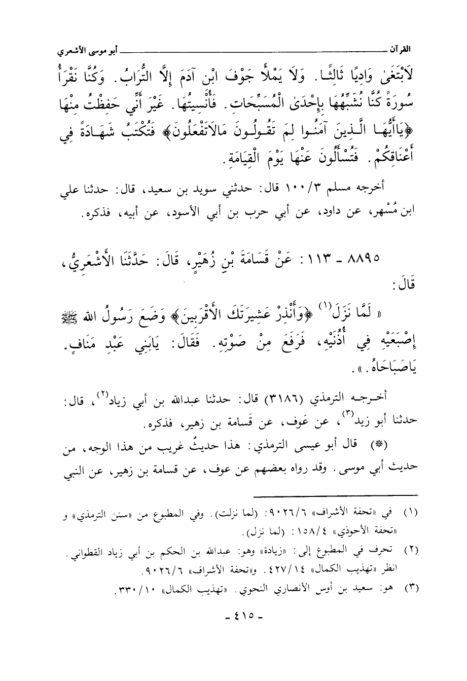 ٨٨٩٥ - عَنْ قَسَامَةَ بْنِ زُهَيْرٍ، قال: حدَّثنا الأَشْعَرِيُّ، قال:
