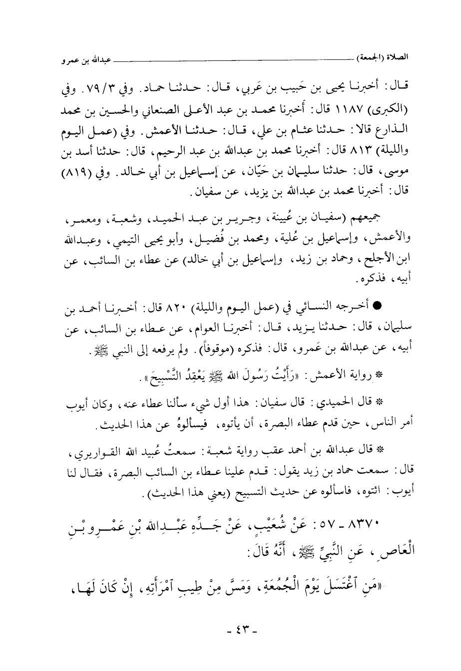 قال: أَخْبَرنا يَحيى بن حَبيب بن عَربي، قال: حدَّثنا حماد. وفي ٣/ ٧٩, وفي "الكبرى" ١٢٨٠ قال: أَخْبَرنا محمد بن عبد الأعلى الصنعاني، والحسين بن محمد الذارع، قالا: حدَّثنا عثام بن علي، قال: حدَّثنا الأعمش. وفي "عمل اليوم والليلة" ٨١٣ قال: أَخْبَرنا محمد بن عبدِ الله بن عبد الرحيم، قال: حدَّثنا أسد بن موسى، قال: حدَّثنا سليمان بن حَيّان، عن إسماعيل بن أبي خالد. وفي (٨١٩) قال: أَخْبَرنا محمد بن عبدِ الله بن يزيد، عن سفيان.