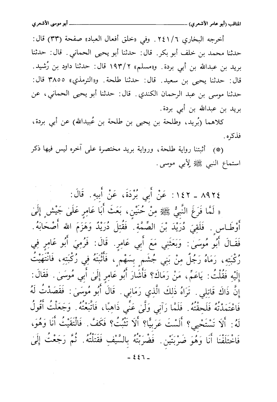 أخرجه البخاري ٦/ ٢٤١. وفي خلق أفعال العباد صفحة (٣٣) قال: حدَّثنا محمد بن خلف أبو بكر. قال: حدَّثنا أبو يحيى الحماني. قال: حدَّثنا بريد بن عبد الله بن أبي بردة. ومسلم ٢/ ١٩٣ قال: حدَّثنا داود بن رُشيد. قال: حدَّثنا يحيى بن سعيد. قال: حدَّثنا طلحة. والترمذي ٣٨٥٥ قال: حدَّثنا موسى بن عبد الرحمن الكندي. قال: حدَّثنا أبو يحيى الحماني، عن بريد بن عبد الله بن أبي بردة.