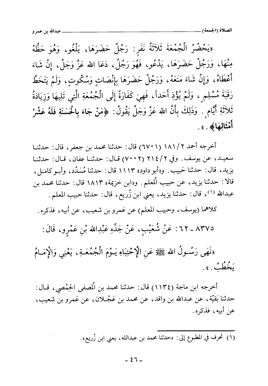 كلاهما (يوسف، وحبيب) عن عَمرو بن شُعيب، عن أبيه، فذكره.