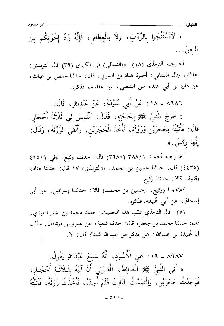 - أخرجه التِّرمِذي ١٨ قال: حدَّثنا هناد. و"النَّسائي" في "الكبرى"٣٩ قال: أَخْبَرنا هناد بن السري. قالا: حدَّثنا حفص بن غياث، عن داود بن أبي هند، عن الشعبي،
