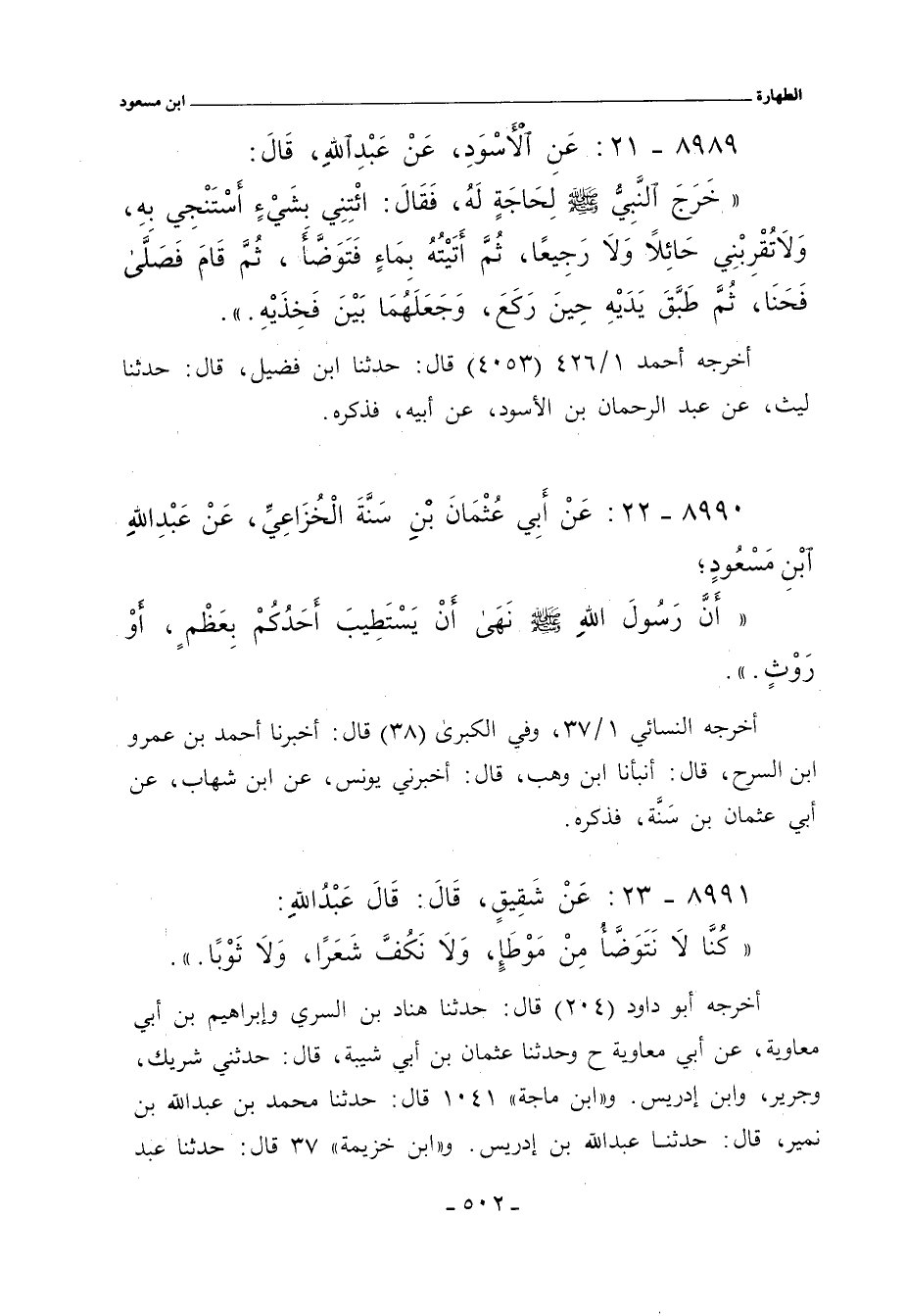 ٨٩٩٠ - عَنْ أَبِي عُثْمَانَ بْنِ سَنَّةَ الْخُزَاعِيِّ، عَنْ عَبْدِ اللهِ بْنِ مَسْعُودٍ؛