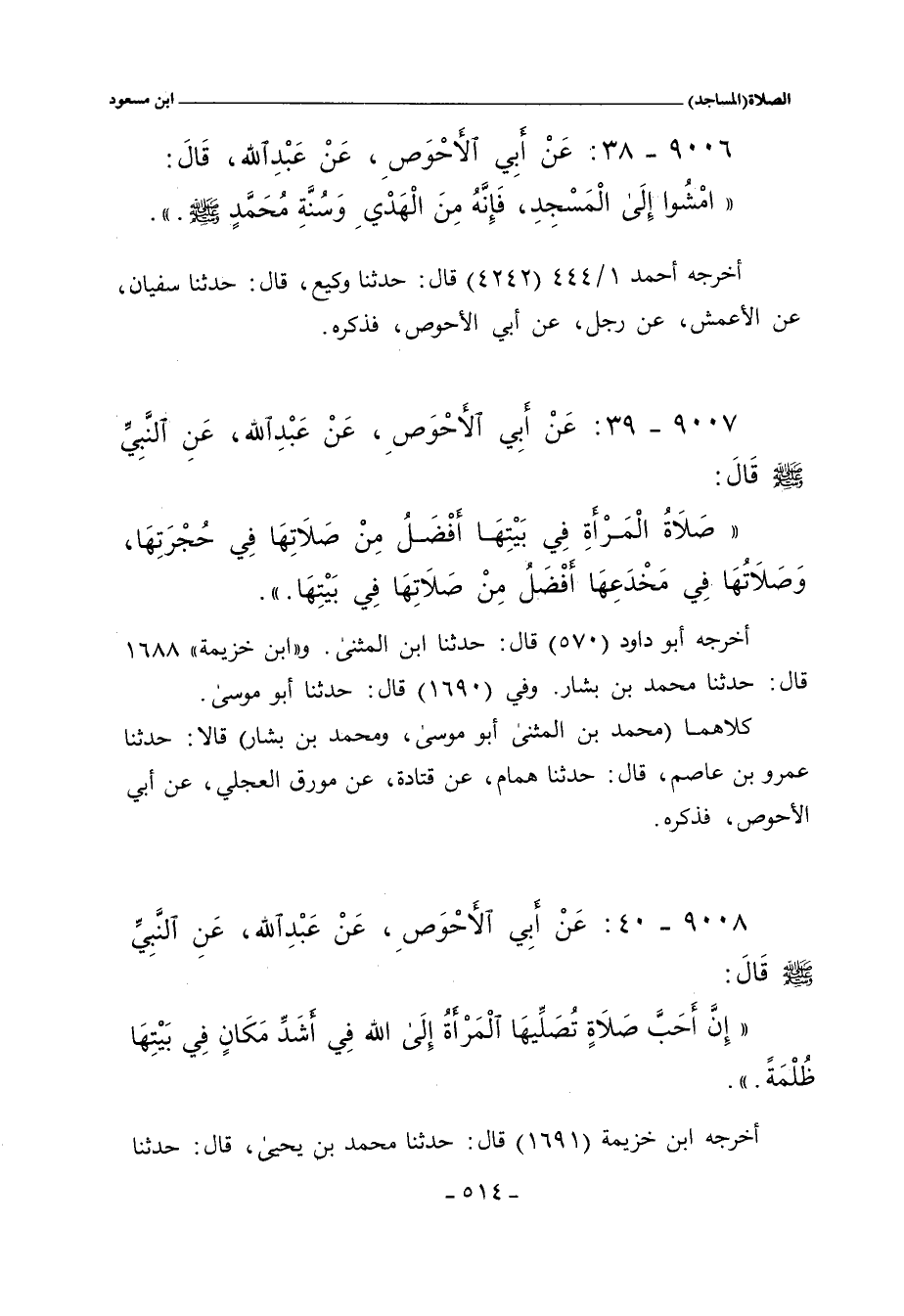 ٩٠٠٨ - عَنْ أَبِي الأَحْوَصِ، عَنْ عَبْدِ اللهِ، عَنِ النَّبِيِّ صلى الله عليه وسلم، قَالَ:
