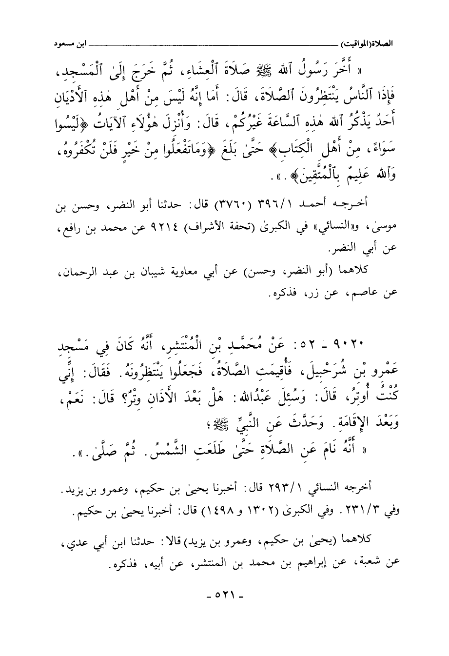 ٩٠٢٠ - عَنْ مُحَمَّدِ بْنِ الْمُنْتَشِرِ، أَنَّهُ كَانَ فِي مَسْجِدِ عَمْرِو بْنِ شُرَحْبِيلَ، فَأُقِيمَتِ الصَّلَاةُ، فَجَعَلُوا يَنْتَظِرُونَهُ. فَقَالَ: إِنًّي كُنْتُ أُوتِرُ، قَالَ: وَسُئِلَ عَبْدُ اللهِ: هَلْ بَعْدَ الأَذَانِ وِتْرٌ؟ قَالَ: نَعَمْ، وَبَعْدَ الإِقَامَةِ. وَحَدَّثَ عَنِ النَّبِيِّ صلى الله عليه وسلم؛