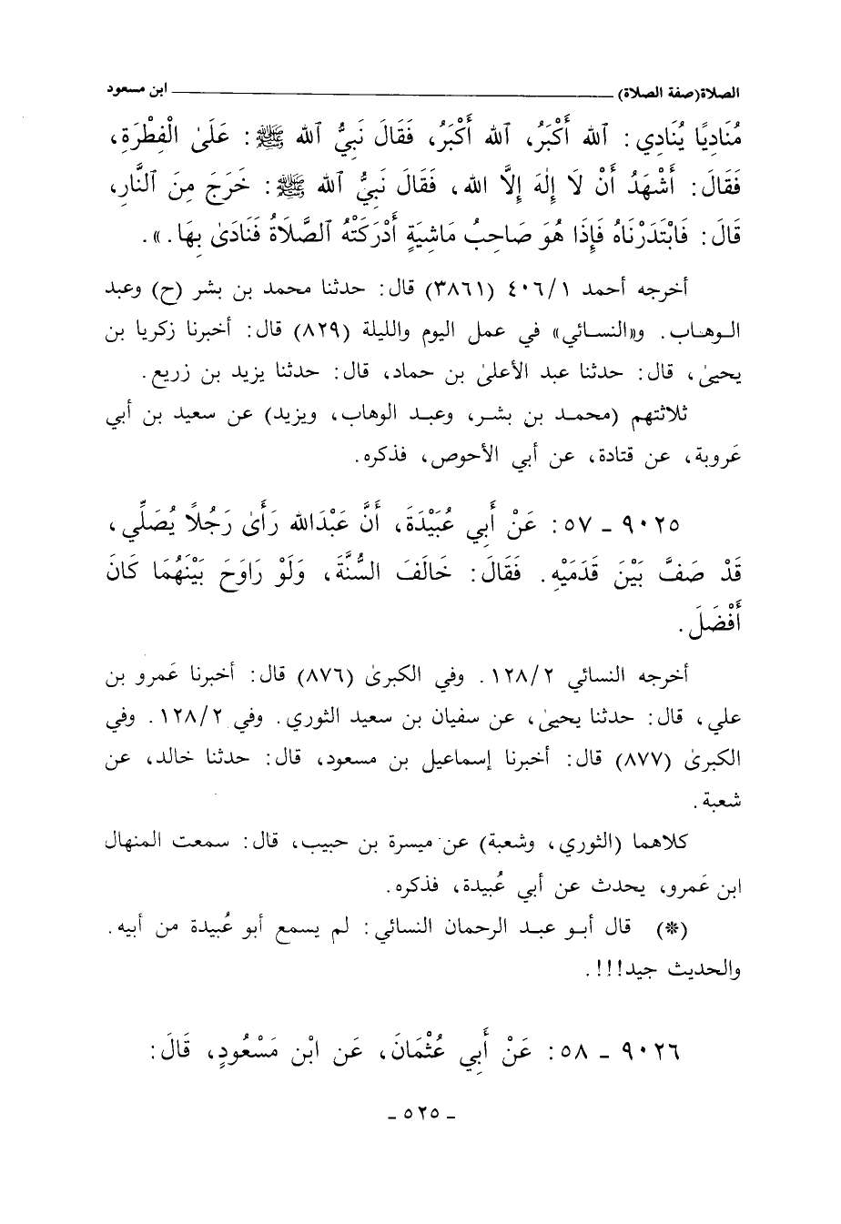 - قال أبو عبد الرحمن النسائي: أبو عُبيدة لم يسمع من أبيه، والحديث جيد!.