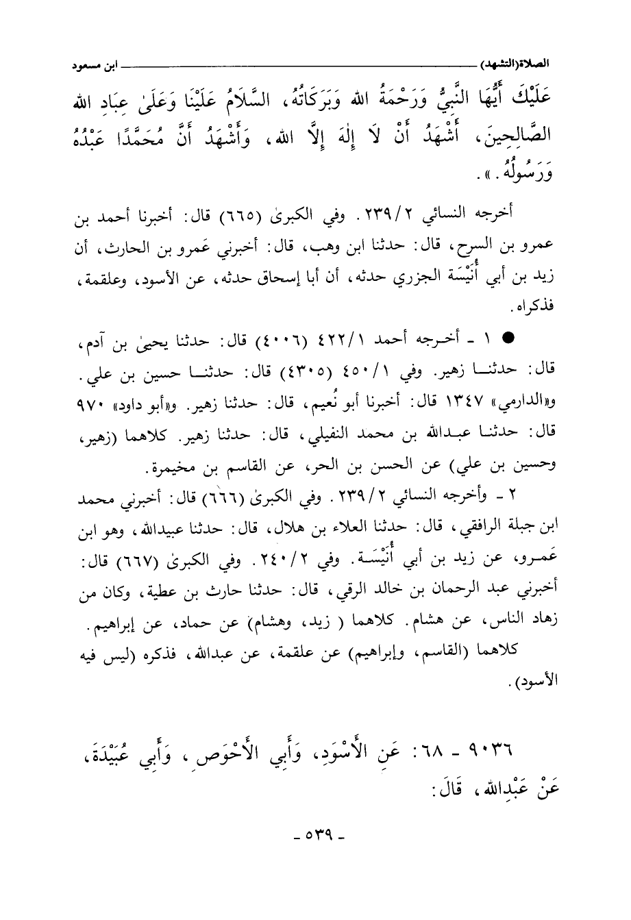 أخرجه النسائي ٢/ ٢٣٩، وفي "الكبرى" ٧٥٦ قال: أَخْبَرنا أحمد بن عمرو بن السرح، قال: حدَّثنا ابن وهب، قال: أخبرني عَمرو بن الحارث، أن زيد بن أبي أُنَيْسَة الجزري حدثه، أن أبا إسحاق حدثه،