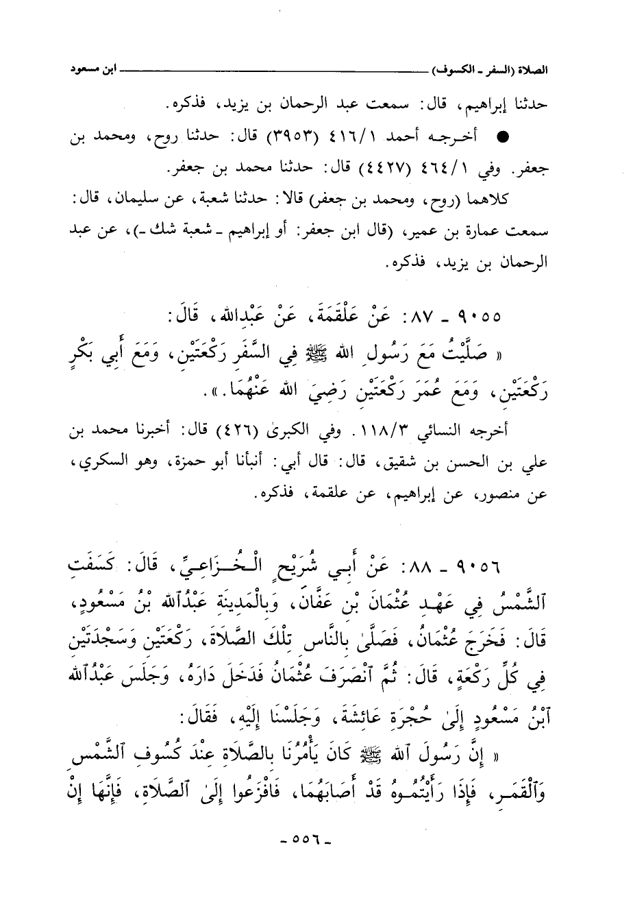 أخرجه النسائي ٣/ ١١٨، وفي "الكبرى" ٥١٣ و ١٩١٠ قال: أَخْبَرنا محمد بن علي بن الحسن بن شقيق، قال أبي: أنبأنا أبو حمزة، وهو السكري، عن منصور، عن إبراهيم، عن علقمة، فذكره