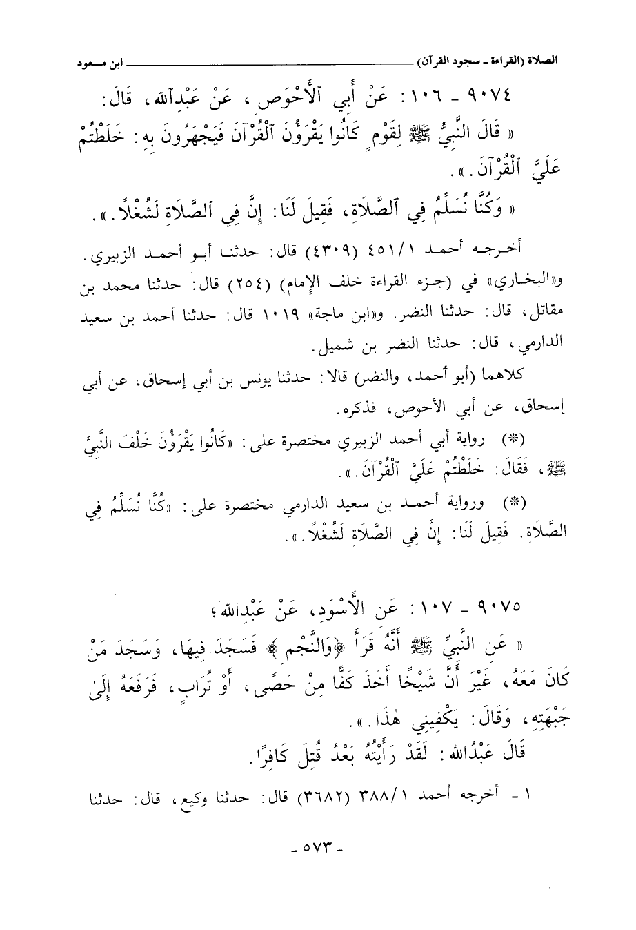 ٩٠٧٤ - عَنْ أَبِي الأَحْوَصِ، عَنْ عَبْدِ اللهِ، قَالَ: