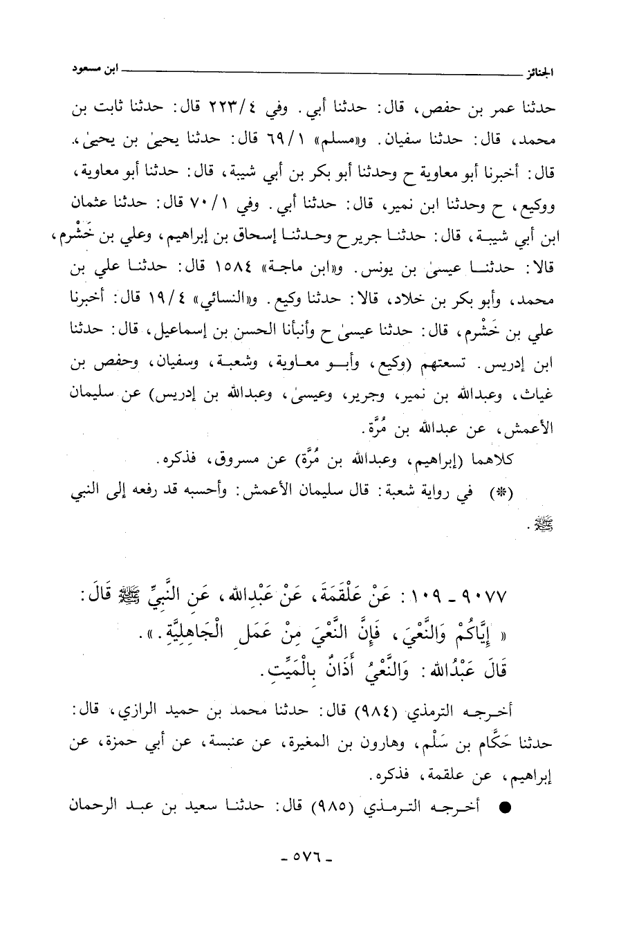 تسعتهم (وكيع، وأبو معاوية، وشعبة، وسفيان، وحفص بن غياث، وعبد اللهِ بن نمير، وجرير، وعيسى، وعبد اللهِ بن إدريس) عن سليمان الأعمش، عن عبد اللهِ بن مُرَّة.