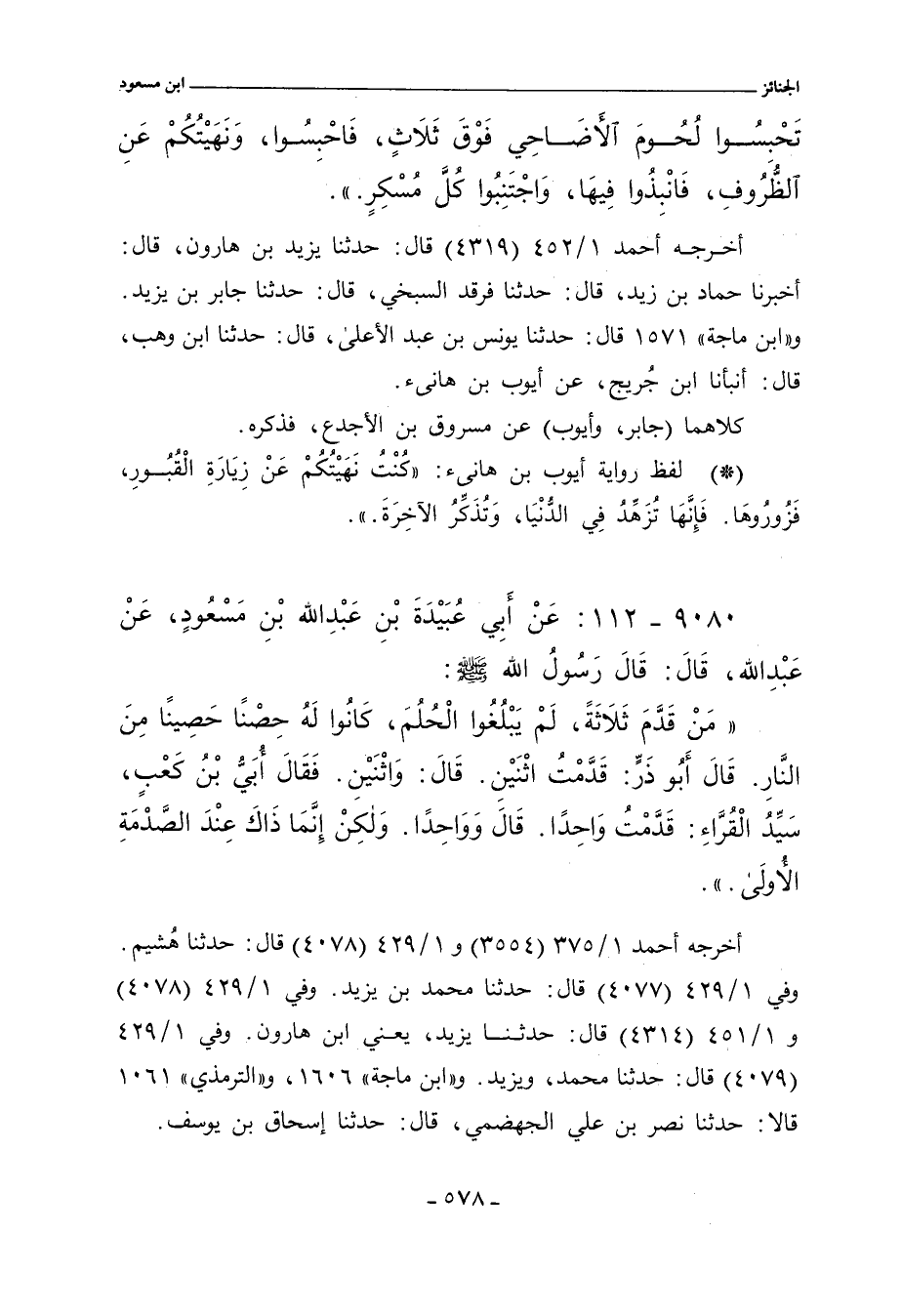 ٩٠٨٠ - عَنْ أَبِي عُبَيْدَةَ بْنِ عَبْدِ اللهِ، بْنِ مَسْعُودٍ، قَالَ: قَالَ رَسُولُ اللهِ صلى الله عليه وسلم: