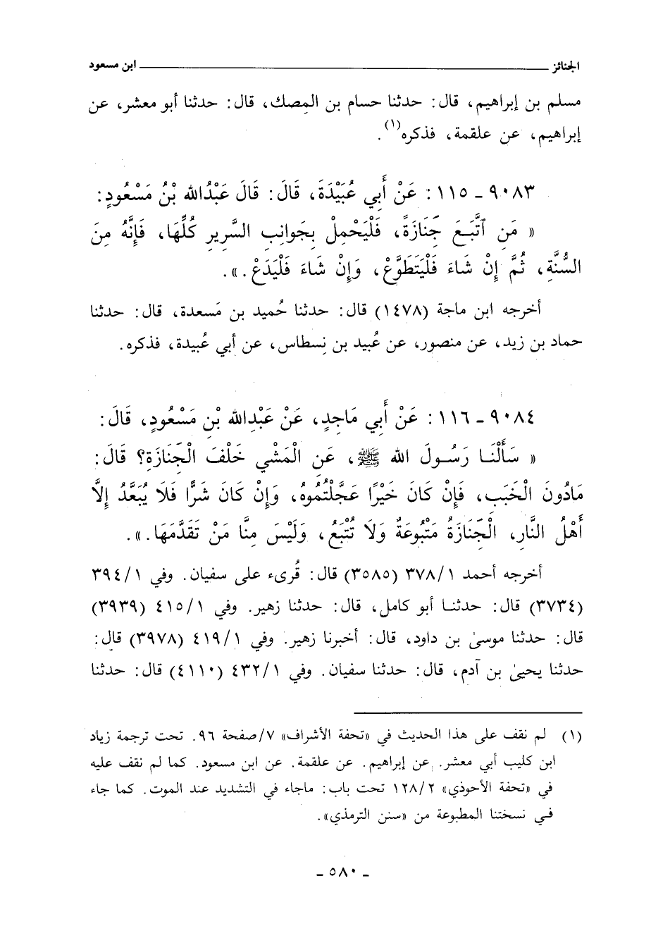 أخرجه اابن ماجة ١٤٧٨ قال: حدَّثنا حُميد بن مَسعدة، حدَّثنا حماد بن زيد. عن منصور، عن عُبيد بن نِسطاس، عن أبي عُبيدة , فذكره