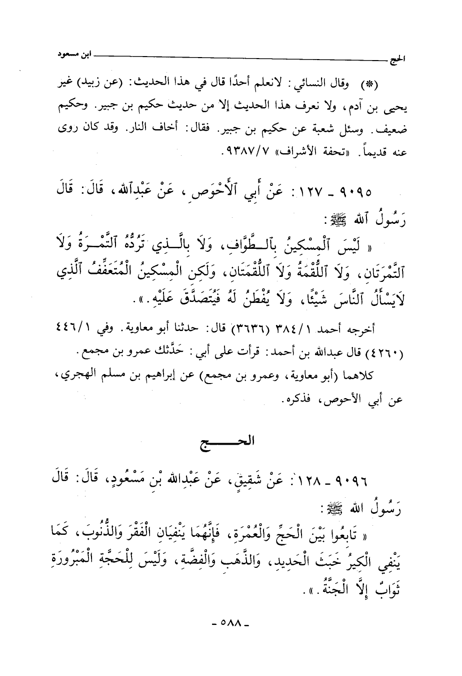 ٩٠٩٥ - عَنْ أَبِي الأَحْوَصِ، عَنْ عَبْدِ اللهِ، قَالَ: قَالَ رَسُولُ اللهِ صلى الله عليه وسلم:
