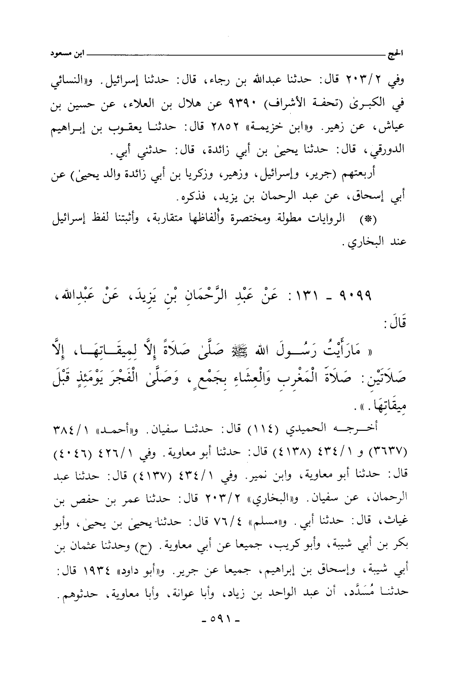 أربعتهم (جرير، وإسرائيل بن يونس، وزهير بن معاوية، وزكريا بن أبي زائدة، والد يحيى) عن أبي إسحاق، عن عبد الرحمن بن يزيد، فذكره