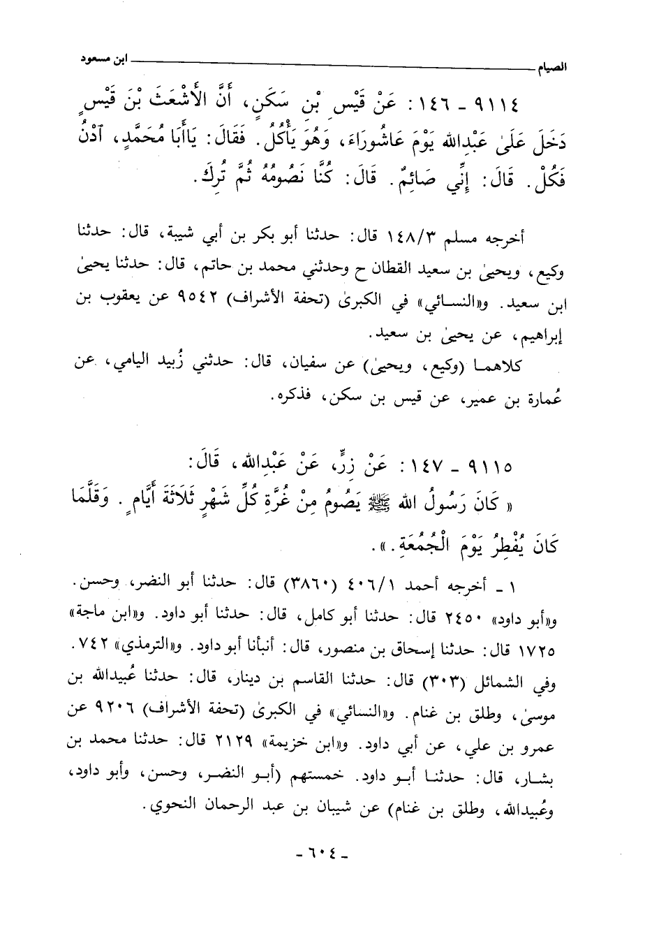 ٩١١٤ - عن قَيْسِ بْنِ سَكَنٍ، أَنَّ الأَشْعَثَ بْنَ قَيْسٍ دَخَلَ عَلَى عَبْدِ اللهِ يَوْمَ عاشُورَاءَ، وَهُوَ يَأكلُ. فَقَالَ: يَا أَبَا مُحَمَّدٍ، ادْنُ فَكُلْ. قَالَ: إِنِّي صَائِمٌ. قَالَ: كُنَّا نَصُومُهُ ثُمَّ تُرِكَ.