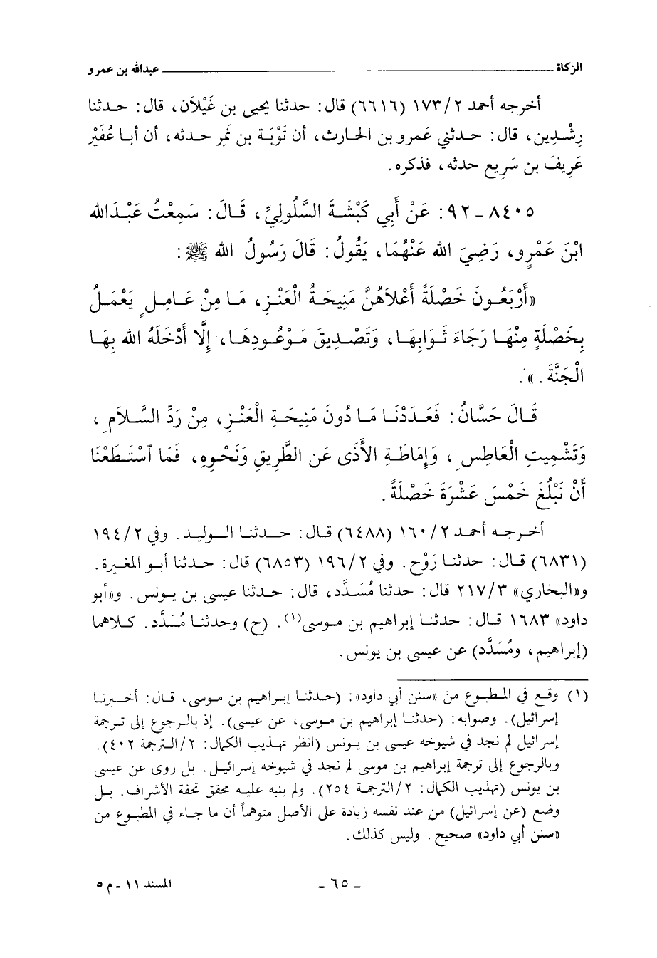 أخرجه أحمد ٢/ ١٦٠ (٦٤٨٨) قال: حدَّثنا الوليد. وفي ٢/ ١٩٤ (٦٨٣١) قال حدَّثنا رَوْح. وفي ٢/ ١٩٦ (٦٨٥٣) قال: حدَّثنا أبو المغيرة. و"البُخَارِي" ٣/ ٢١٧ (٢٦٣١) قال: حدَّثنا مُسَدَّد، حدَّثنا عيسى بن يونس. و"أبو داود" ١٦٨٣ قال: حدَّثنا إبراهيم بن موسى، قال: أَخْبَرنا عيسى (ح) وحدَّثنا مُسَدَّد، حدَّثنا عيسى