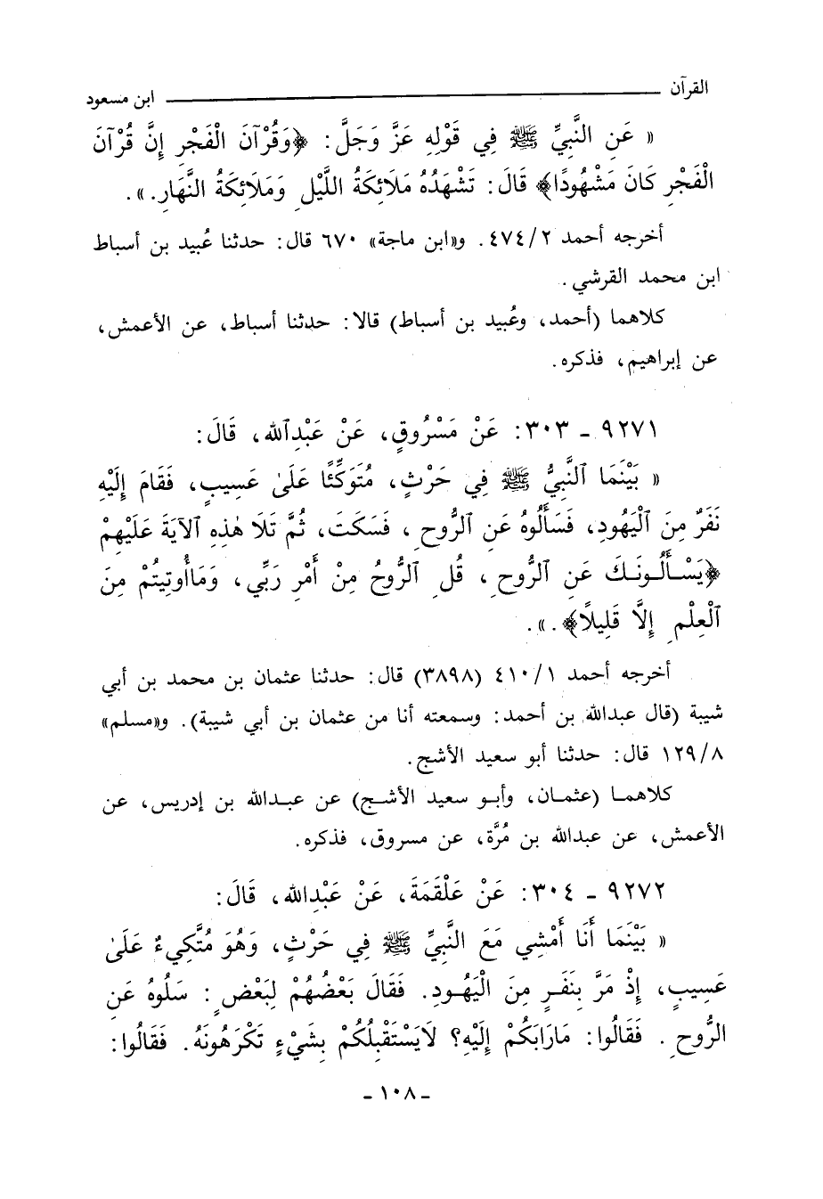 ٩٢٧١ - عَنْ مَسْرُوقٍ، عَنْ عَبْداللهِ، قَالَ: