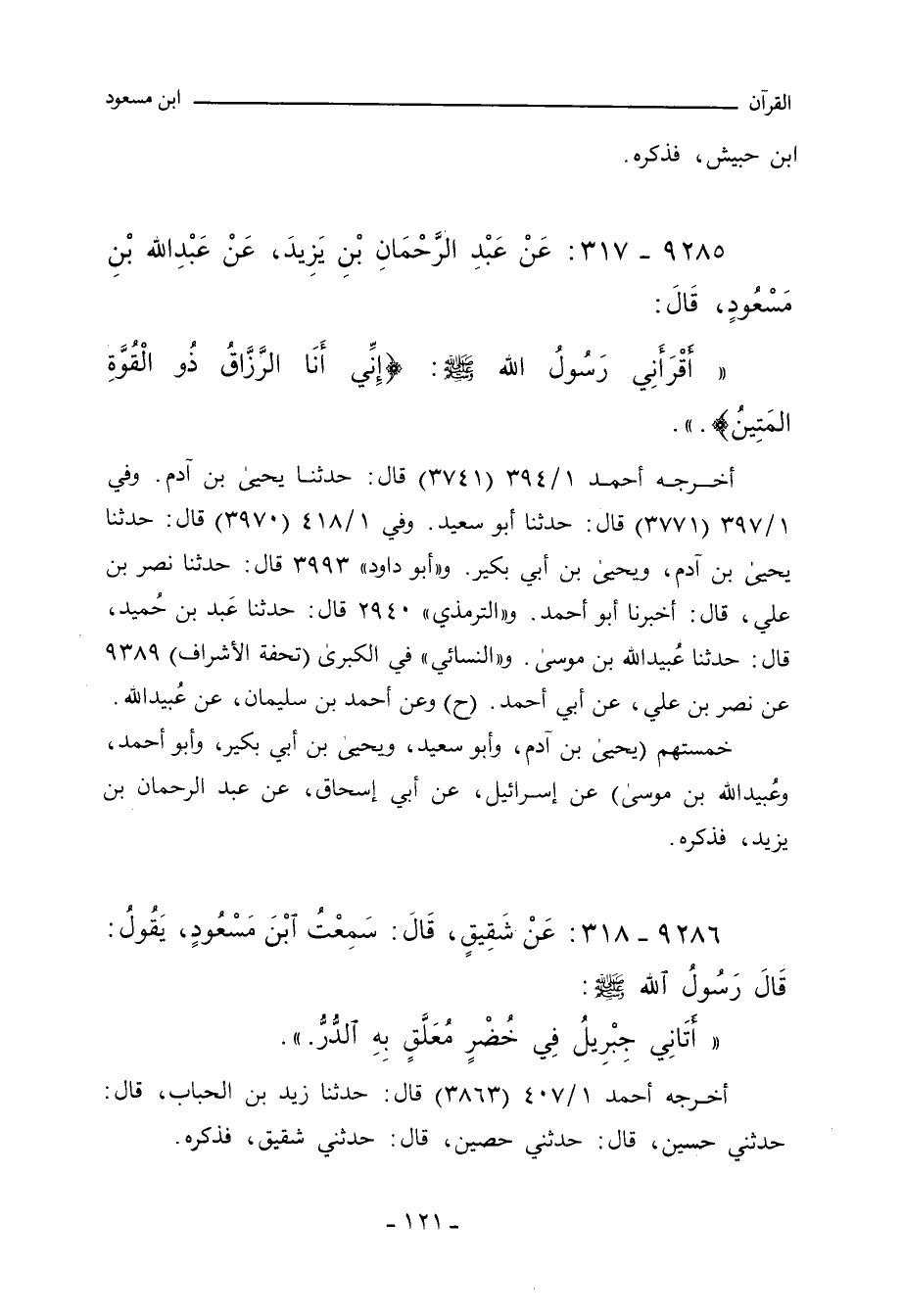 ٩٢٨٥ - عَنْ عَبْدِ الرَّحْمَانِ بْنِ يَزِيدَ، عَنْ عَبْداللهِ بْن مَسْعُودٍ، قَالَ:
