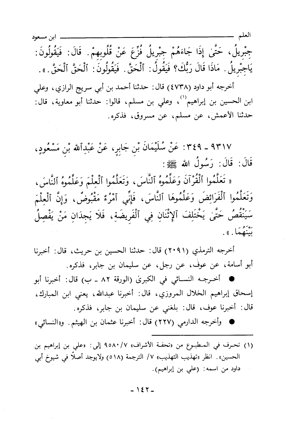 ٩٣١٧ - عَنْ سُلَيْمَانَ بْنِ جَابِرٍ، عَنْ عَبْدِ اللهِ بْنِ مَسْعُودٍ، قَالَ: قَالَ رَسُولُ اللهِ صلى الله عليه وسلم: