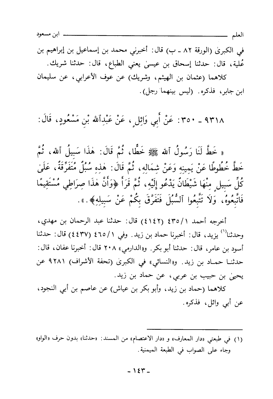 ٩٣١٨ - عَنْ أَبِي وَائِلٍ، عَنْ عَبْدِ اللهِ بْنِ مَسْعُودٍ، قَالَ: