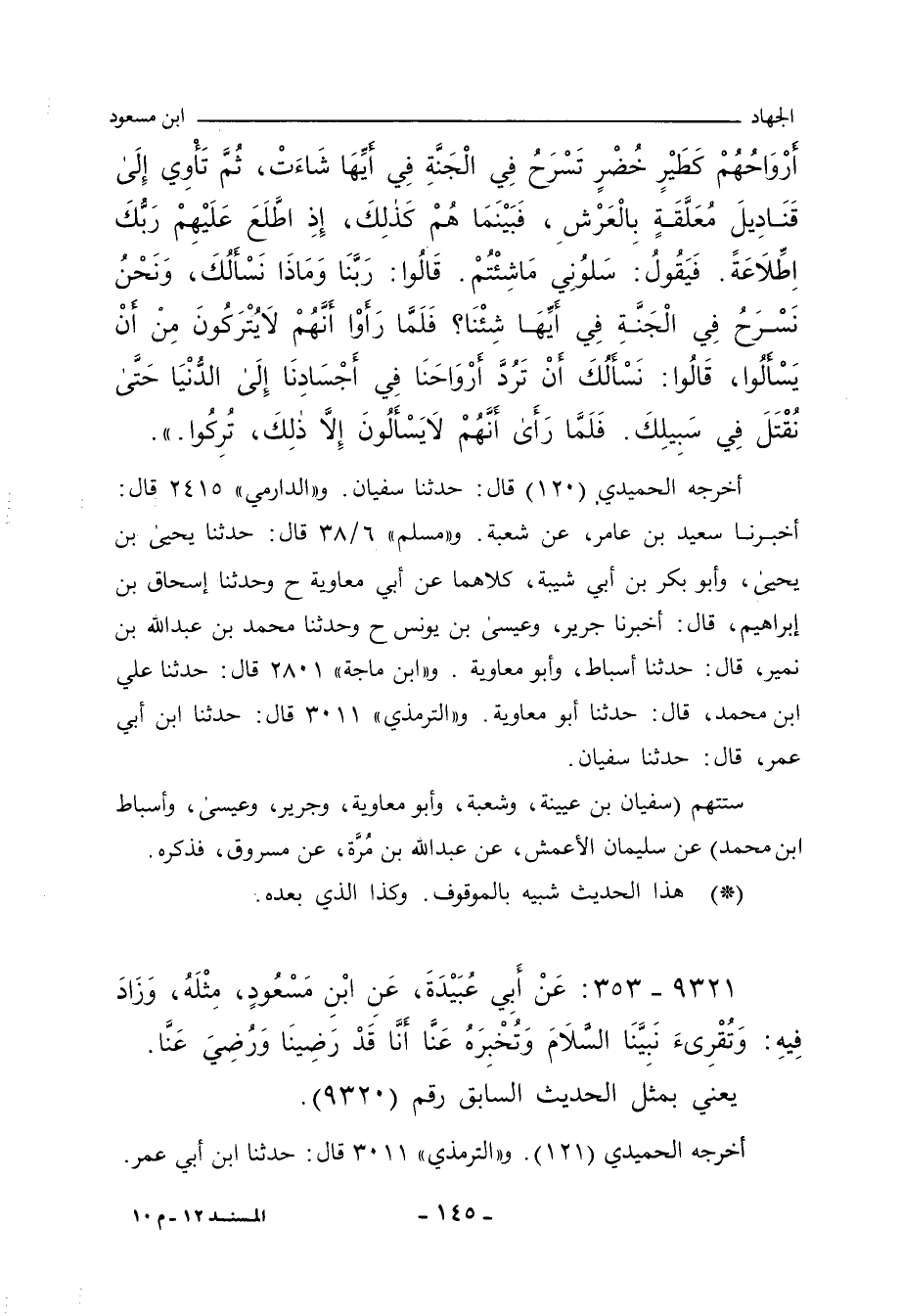 ٩٣٢١ - عن أبي عبيدة، عن ابن مسعود، مثله، وزاد فيه: وتقرأ نبينا السلام وتخبره عنا أنا قد رضينا ورضي عنا.