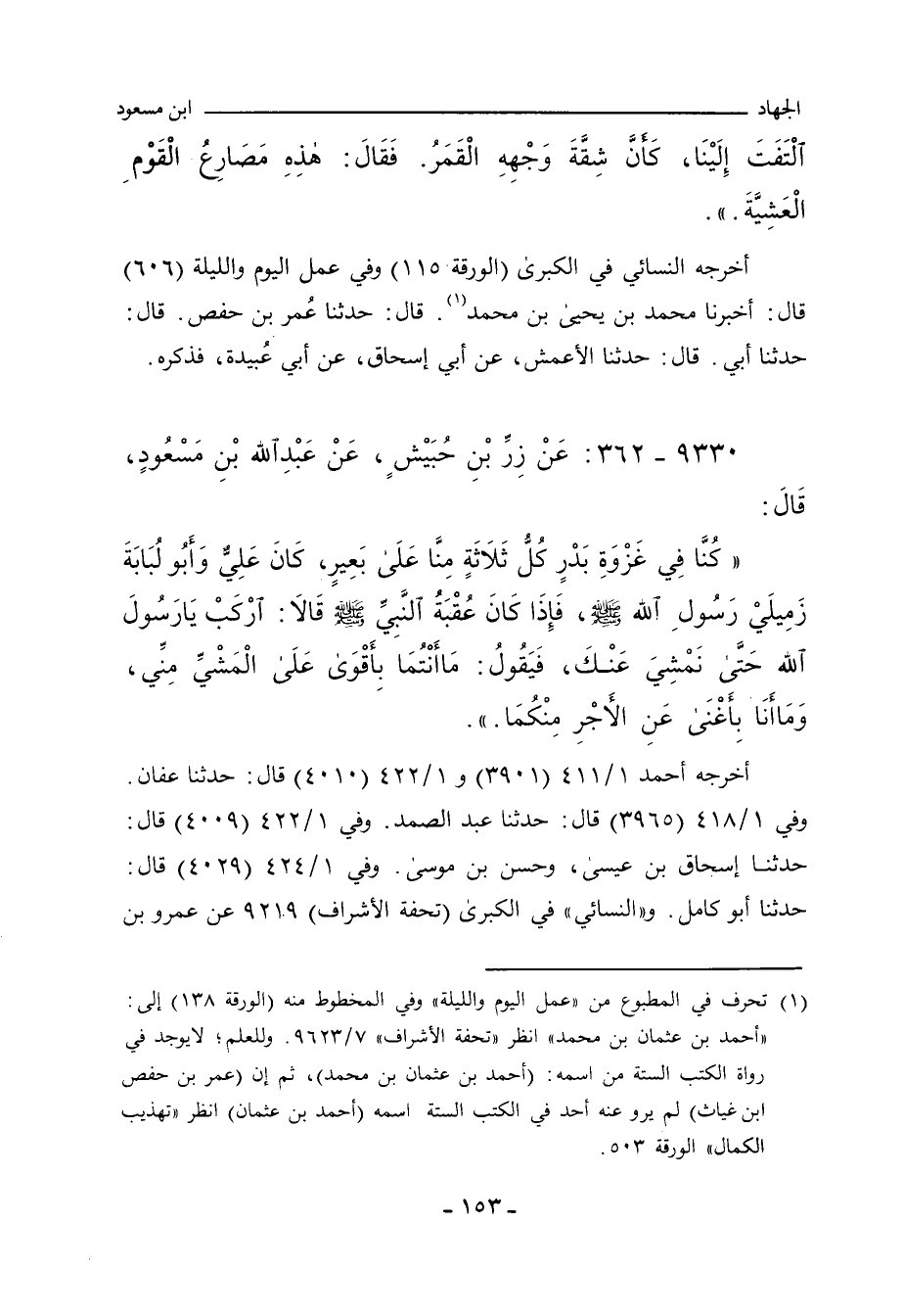 ٩٣٣٠ - عَنْ زِرِّ بْنِ حُبَيْشٍ، عَنْ عَبْدِ اللهِ بْنِ مَسْعُودٍ، قَالَ:
