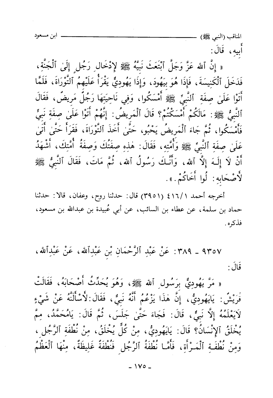 إِنَّ اللَّهَ، عَزَّ وَجَلَّ، ابْتَعَثَ نَبِيَّهُ صلى الله عليه وسلم لإِدْخَالِ رَجُلٍ إلَى الْجَنَّةِ، فَدَخَلَ الْكَنِيسَةَ، فَإِذَا هُوَ بِيَهُودَ، وَإِذَا يَهُودِىٌّ يَقْرَأُ عَلَيْهِمُ التَّوْرَاةَ، فَلَمَّا أَتَوْا عَلَى صِفَةِ النَّبِيِّ صلى الله عليه وسلم أَمْسَكُوا، وَفِي نَاحِيَتِهَا رَجُلٌ مَرِيضٌ، فَقَالَ النَّبِيُّ صلى الله عليه وسلم: مَا لَكُمْ أَمْسَكْتُمْ؟ قَالَ الْمَرِيضُ: إِنَّهُمْ أَتَوْا عَلَى صِفَةِ نَبِيٍّ فَأَمْسَكُوا، ثُمَّ جَاءَ الْمَرِيضُ يَحْبُو، حَتَّى أَخَذَ التَّوْرَاةَ، فَقَرَأَ حَتَّى أَتَى عَلَى صِفَةِ النَّبِىِّ صلى الله عليه وسلم وَأُمَّتِهِ، فَقَالَ: هَذِهِ صِفَتُكَ وَصِفَةُ أُمَّتِكَ، أَشْهَدُ أَنْ لَا إِلَهَ إِلَاّ اللَّهُ، وَأَنَّكَ رَسُولُ اللهِ، ثُمَّ مَاتَ، فَقَالَ النَّبِيُّ صلى الله عليه وسلم لأَصْحَابِهِ: لُوا أَخَاكُمْ.