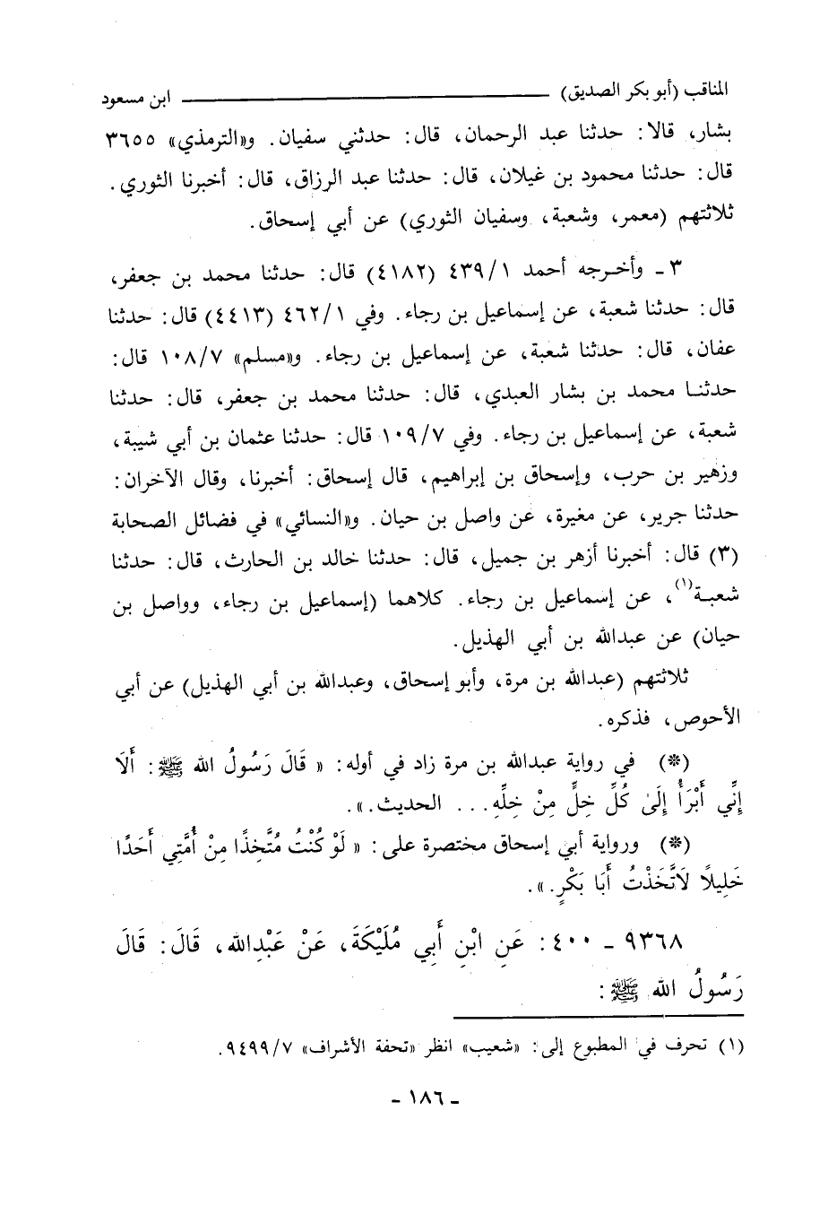 بشار، قالا: حدَّثنا عبد الرحمن، حدثني سفيان. و"التِّرمِذي" ٣٦٥٥ قال: حدَّثنا محمود بن غيلان، حدَّثنا عبد الرزَّاق، أَخْبَرنا الثوري.