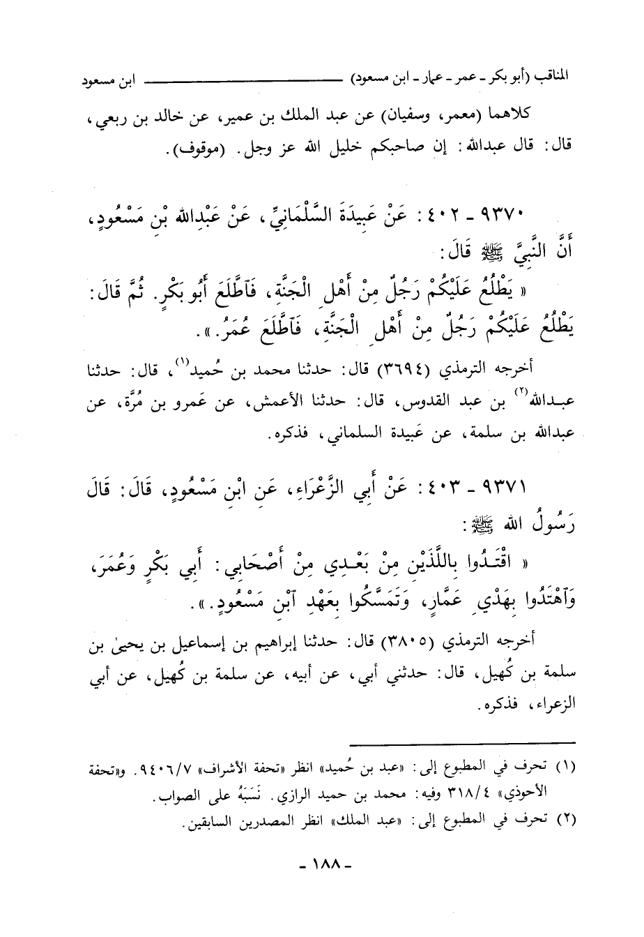 أخرجه الترمذي (٣٦٩٤) قال: حدَّثنا محمد بن حُميد , حدَّثنا عبد الله بن عبد القدوس، حدَّثنا الأعمش، عن عَمْرو بن مُرَّة، عن عبد الله بن سَلِمة، عن عَبيدة السلماني، فذكره.