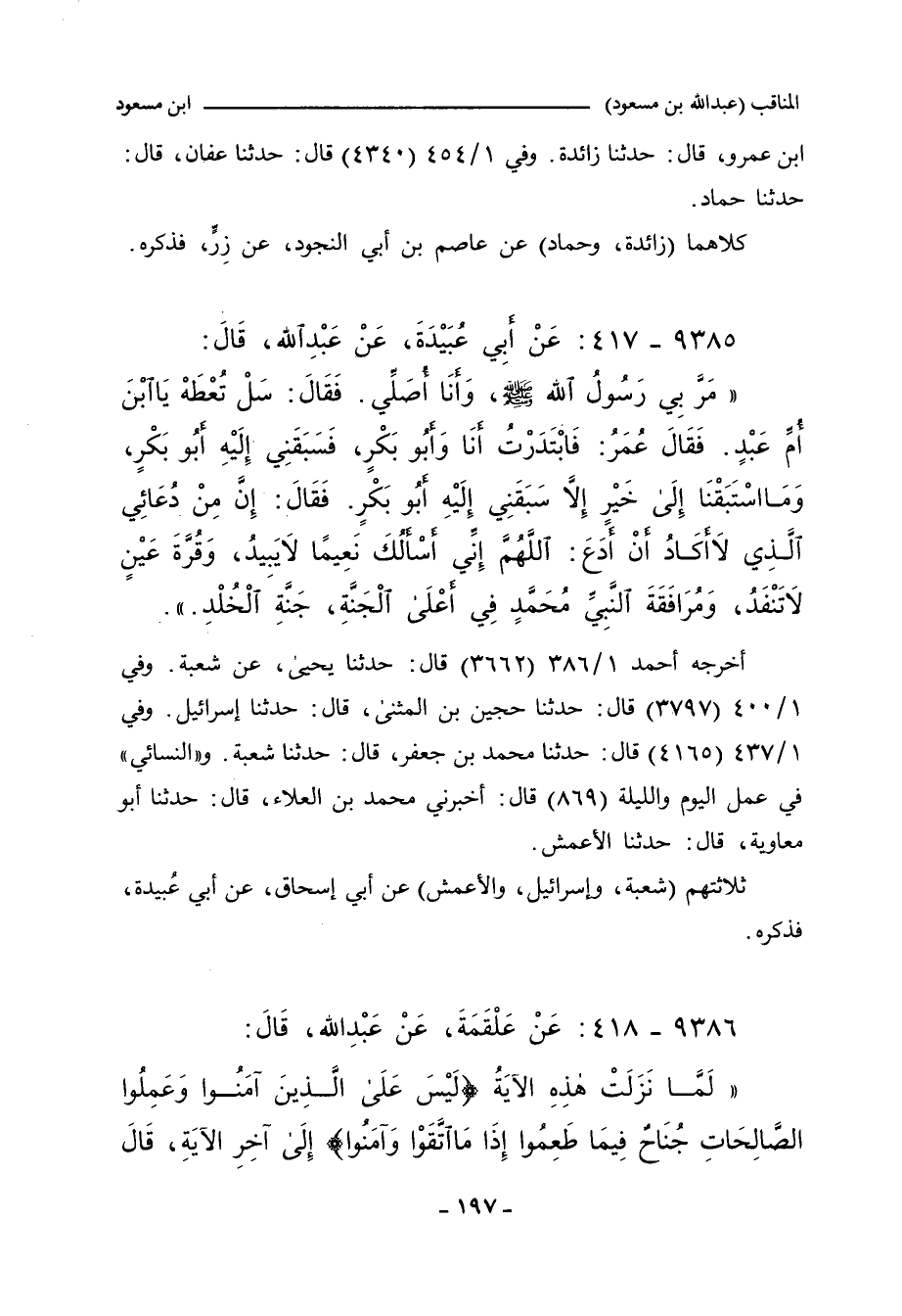 ٩٣٨٥ - عَنْ أَبِي عُبَيْدَةَ، عَنْ عَبْدِ اللهِ، قَالَ: