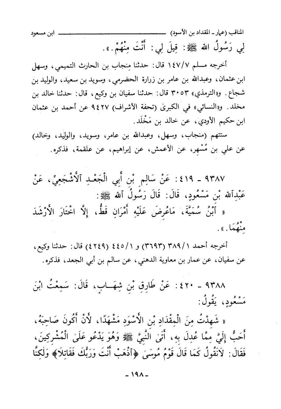 ٩٣٨٧ - عَنْ سَالِمِ بْنِ أَبِي الْجَعْدِ الأَشْجَعِيِّ، عَنْ عَبْدِ اللهِ بْنِ مَسْعُودٍ، قَالَ: قَالَ رَسُولُ اللهِ صلى الله عليه وسلم: