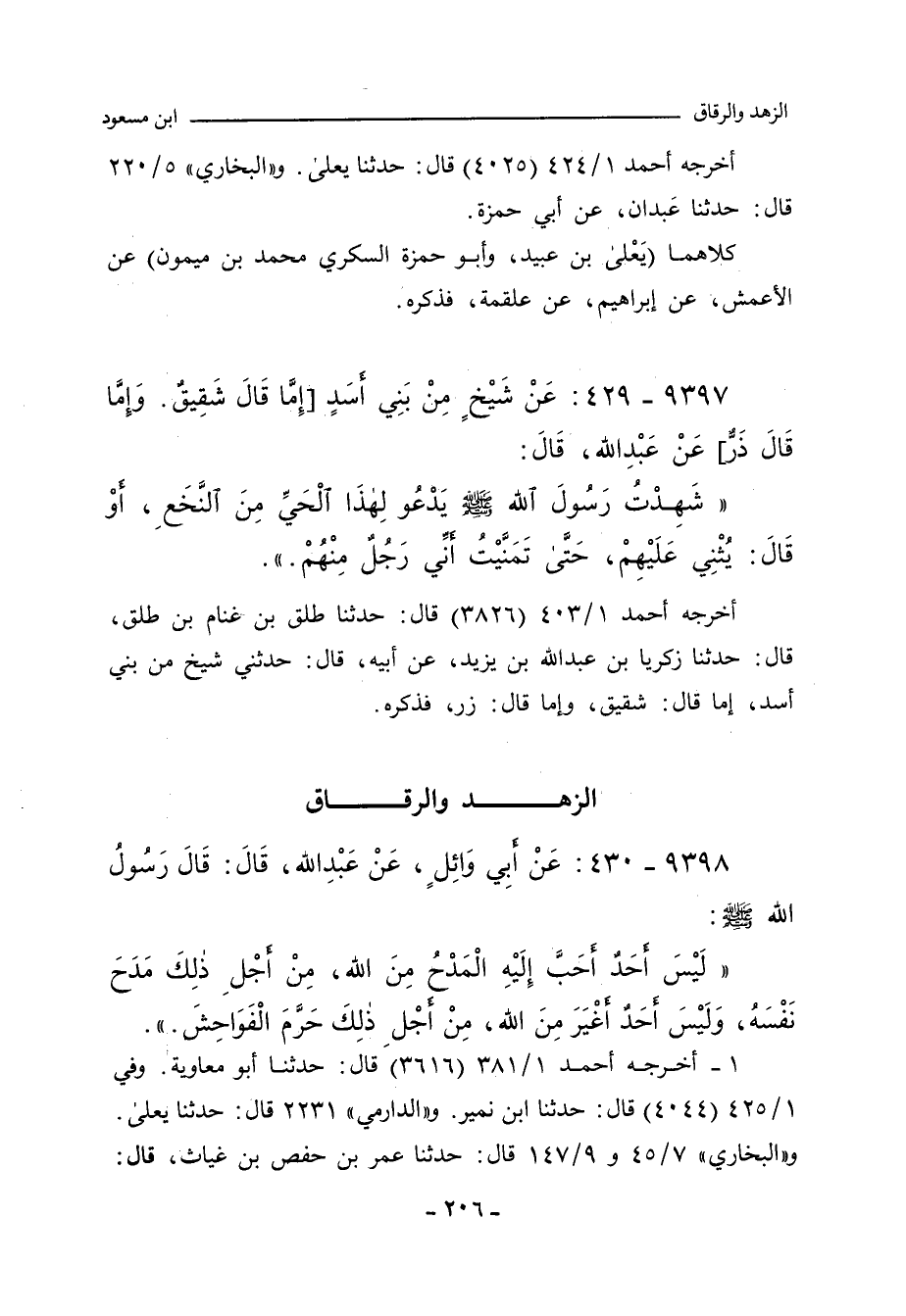 ٩٣٩٨ - عَنْ أَبِي وَائِلٍ، عَنْ عَبْدِ اللهِ، قَالَ: قَالَ رَسُولُ اللهِ صلى الله عليه وسلم: