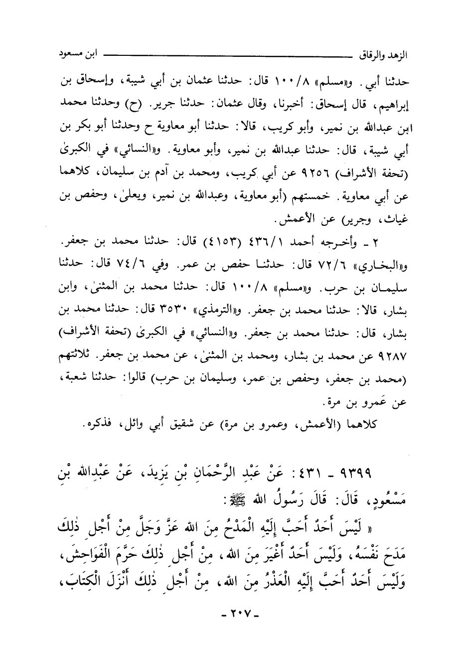 ٢ - وأخرجه أحمد ١/ ٤٣٦ (٤١٥٣) قال: حدَّثنا محمد بن جعفر. و) البُخاري (٦/ ٧٢ (٤٦٣٤) قال: حدَّثنا حفص بن عمر. وفي ٦/ ٧٤ (٤٦٣٧) قال: حدَّثنا سليمان بن حرب. و"مسلم" ٨/ ١٠٠ (٧٠٩٣) قال: حدَّثنا محمد بن المثنى، وابن بشار، قالا: حدَّثنا محمد بن جعفر. و"التِّرمِذي" ٣٥٣٠ قال: حدَّثنا محمد بن بشار، حدَّثنا محمد بن جعفر. و"النَّسائي" في "الكبرى" ١١١٠٨ قال: أَخْبَرنا محمد بن المثنى، ومحمد بن بشار، قالا: حدَّثنا محمد بن جعفر.