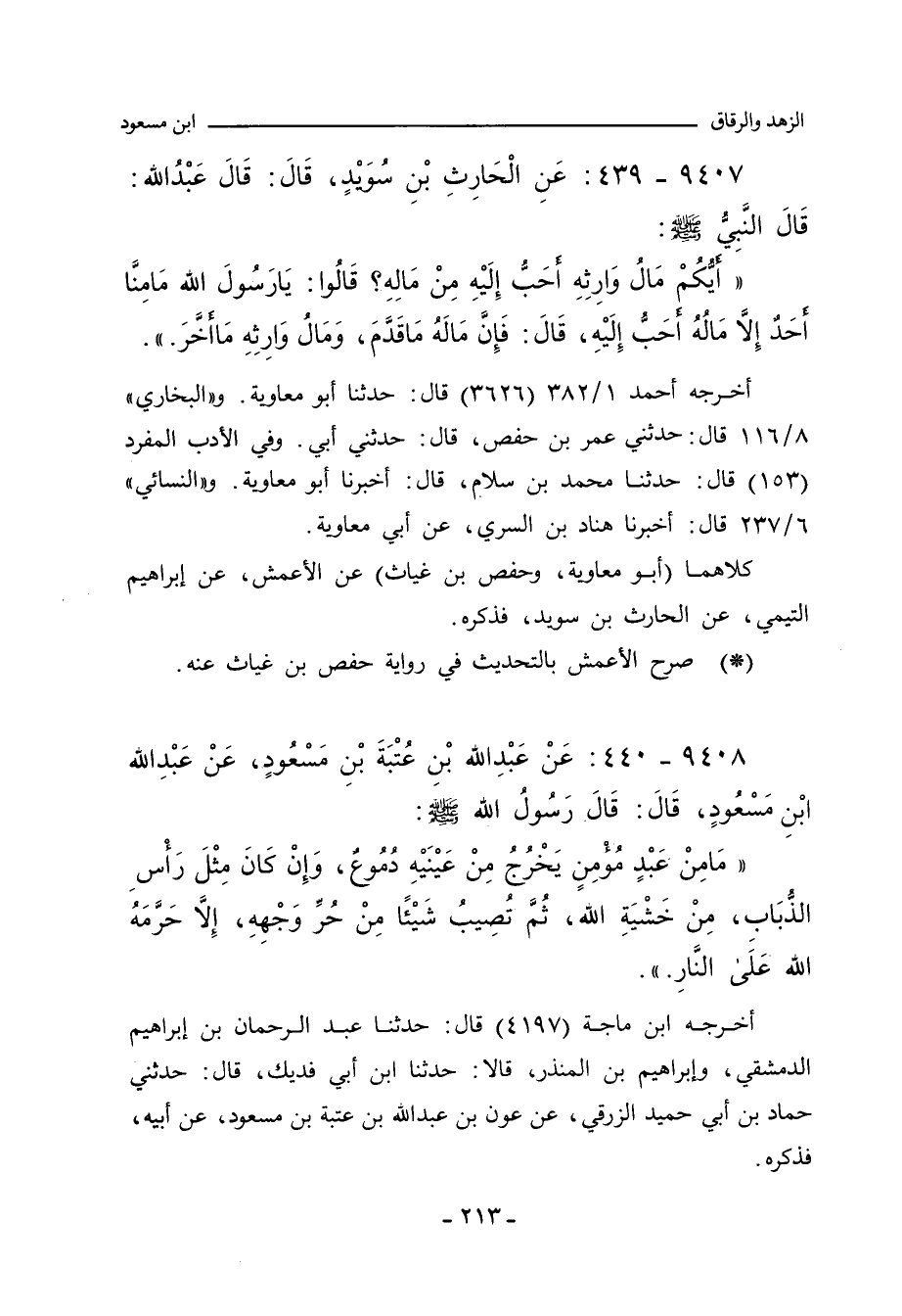 ٩٤٠٧ - عَنِ الْحَارِثِ بْنِ سُوَيْدٍ، عَنْ عَبْدِ اللَّهِ، قَالَ: قَالَ رَسُولُ اللَّهِ صلى الله عليه وسلم: