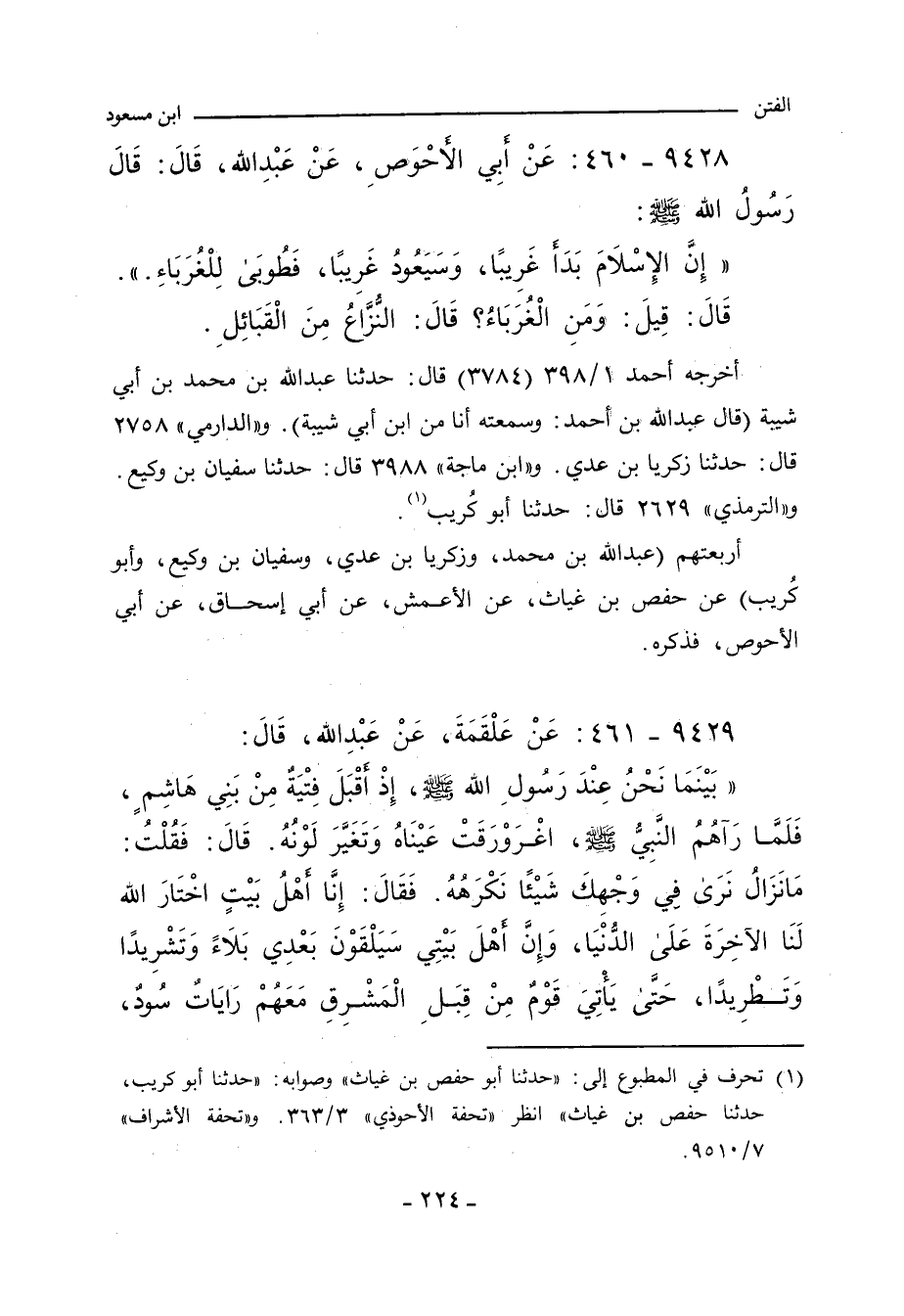 ٩٤٢٨ - عَنْ أَبِي الأَحْوَصِ، عَنْ عَبْدِ اللهِ، قَالَ: قَالَ رَسُولُ اللهِ صلى الله عليه وسلم: