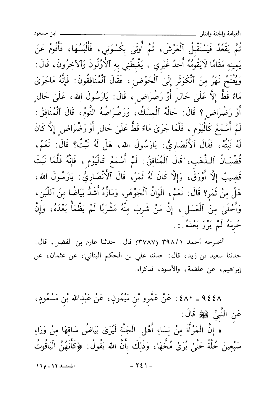 ٩٤٤٨ - عَنْ عَمْرِو بْنِ مَيْمُونٍ، عَنْ عَبْدِ اللهِ بْنِ مَسْعُودٍ، عَنِ النَّبِيِّ صلى الله عليه وسلم، قَالَ:
