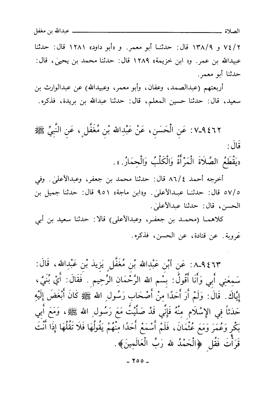 ٩٤٦٢ - عَنِ الْحَسَنِ الْبَصْرِيِّ، عَنْ عَبْدِ اللهِ بْنِ مُغَفَّلٍ، عَنِ النَّبِيِّ صلى الله عليه وسلم , قَالَ: