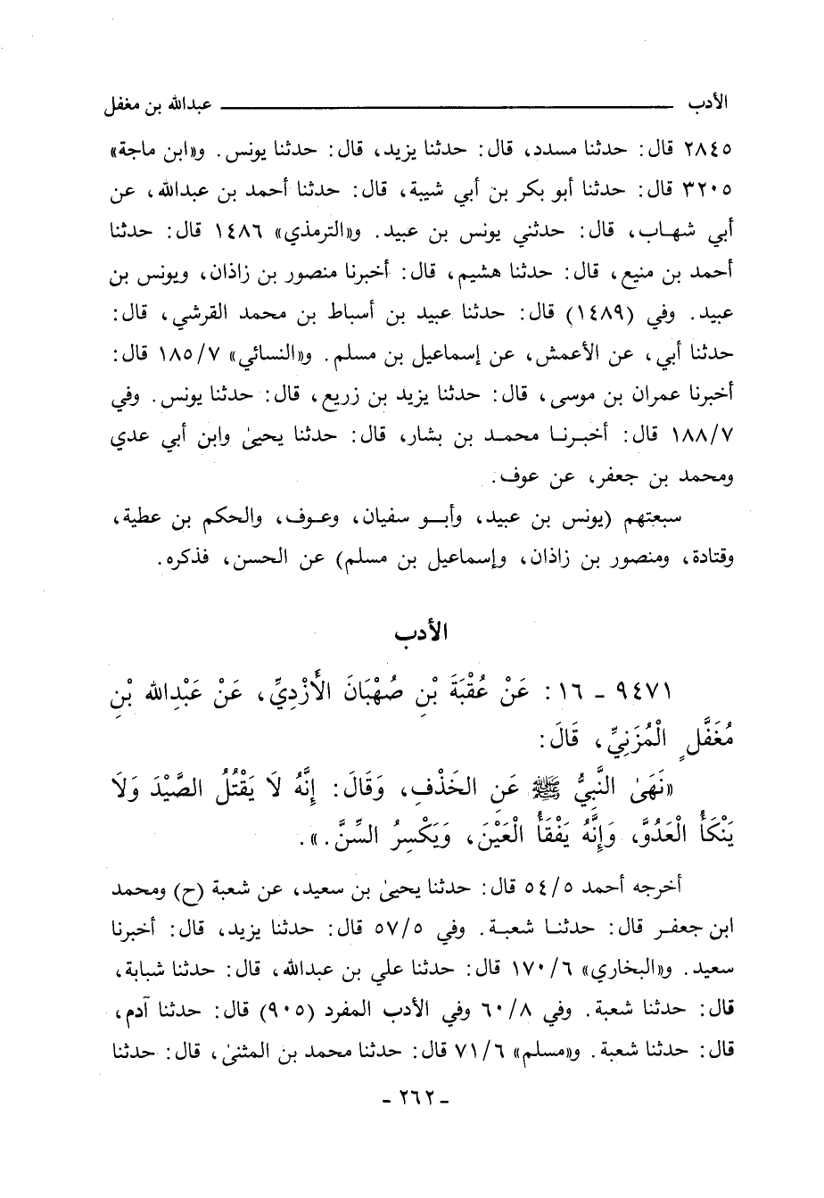 ٩٤٧١ - عَنْ عُقْبَةَ بْنِ صُهْبَانَ، عَنِ ابْنِ مُغَفَّلٍ الْمُزَنِيِّ؛