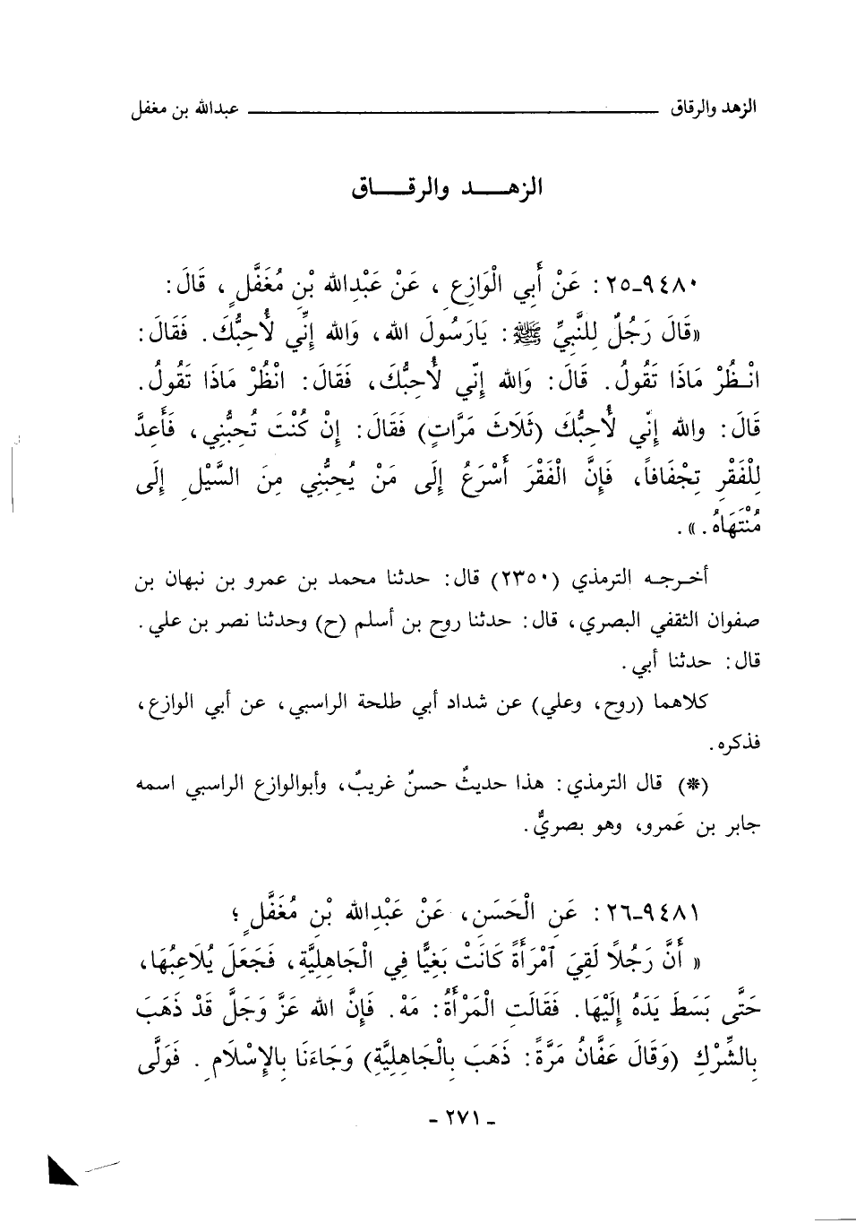 ٩٤٨٠ - عَنْ أَبِي الْوَازِعِ، عَنْ عَبْدِ اللهِ بْنِ مُغَفَّلٍ، قَالَ: