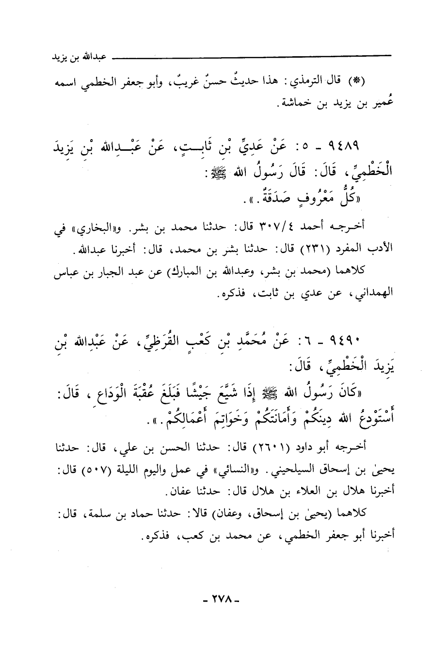 ٩٤٨٩ - عَنْ عَدِيِّ بْنِ ثَابِتٍ، عَنْ عَبْدِ اللهِ بْنِ يَزِيدَ الْخَطْمِيِّ، قَالَ: قَالَ رَسُولُ اللهِ صلى الله عليه وسلم:
