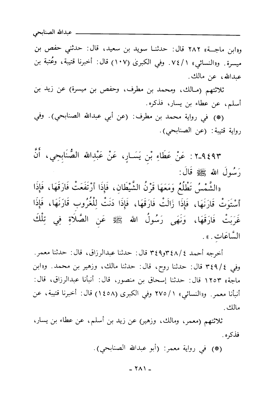٩٤٩٣ - عَنْ عَطَاءِ بْنِ يَسَارٍ، عَنْ عَبْدِ اللهِ الصُّنَابِحِيِّ، أَنَّ رَسُولَ اللهِ صلى الله عليه وسلم قَالَ: