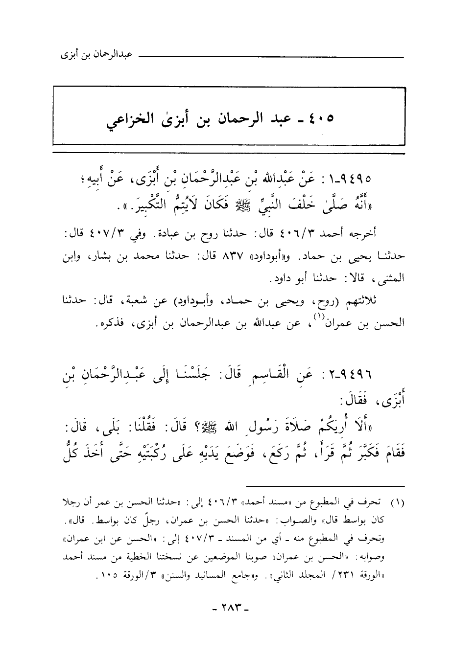 ٤٠٤ - عبد الرحمن بن أبزى الخزاعي