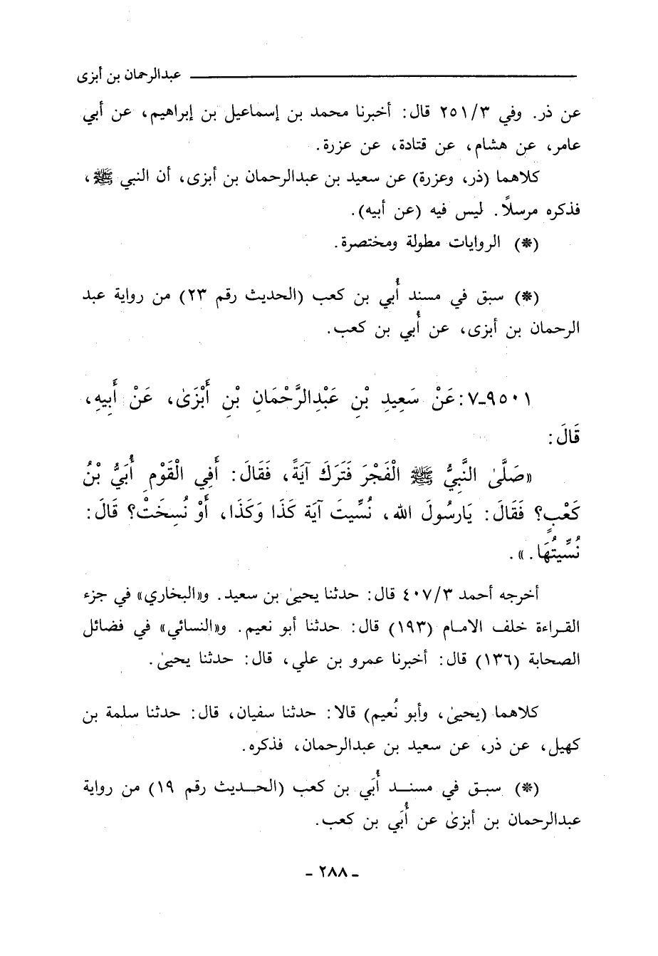 كلاهما (يَحيى، وأبو نُعَيْم) عن سُفْيان الثَّوْرِي، حدثنا سَلَمَة بن كُهَيْل، عن ذَرّ، عن سَعِيد بن عَبْد الرَّحْمان بن أَبْزَى، فذكره.