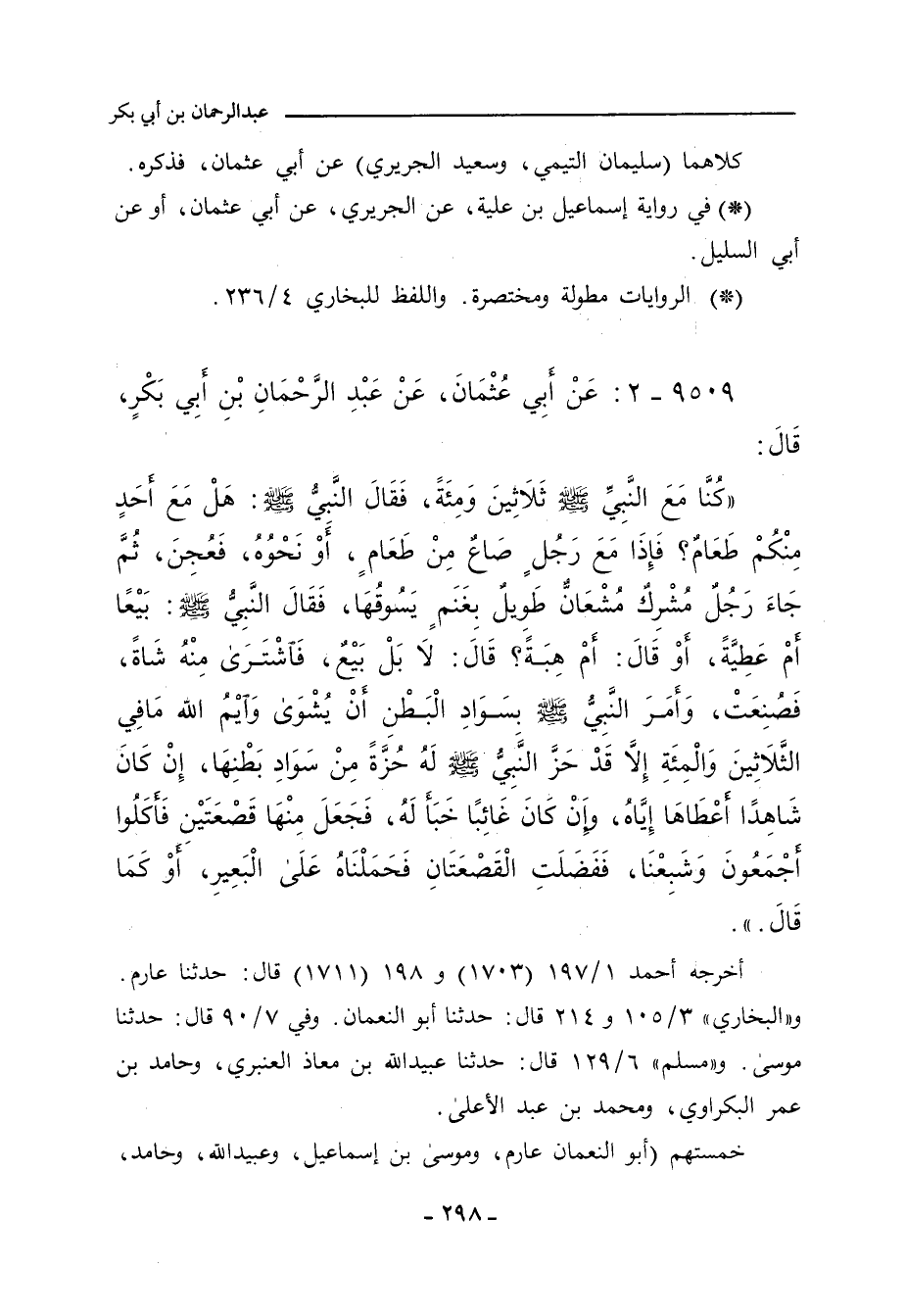 ٩٥٠٩ - عَنْ أَبِي عُثْمَانَ، عَنْ عَبْدِ الرَّحْمَانِ بْنِ أَبِي بَكْرٍ، قَالَ: